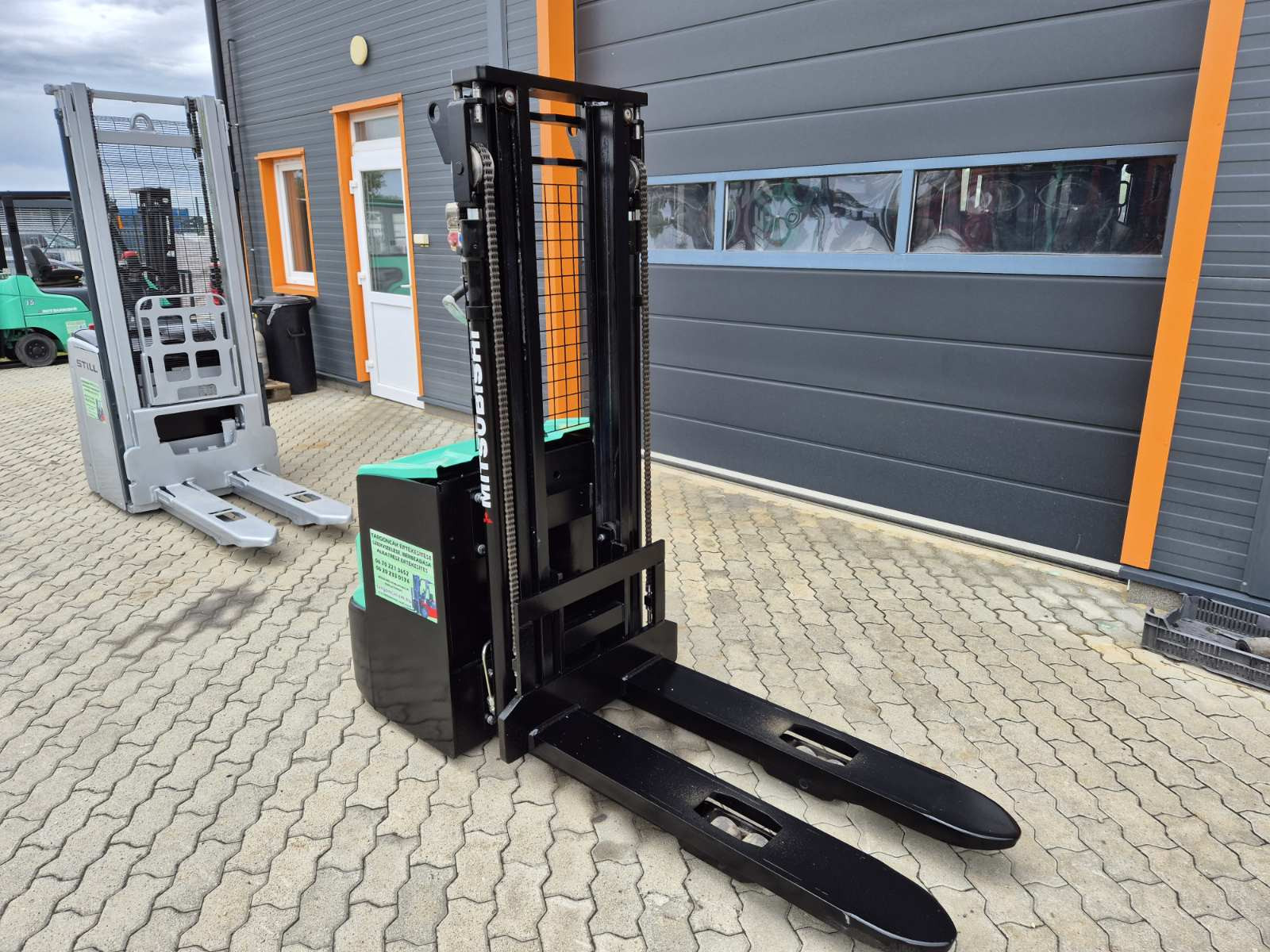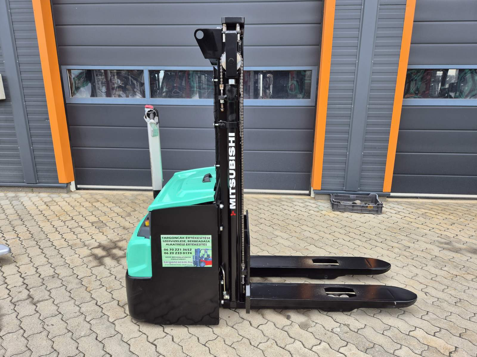 Eladó Mitsubishi SBP16N2 típusú elektromos magesemelésű gyalogkíséretű raklapemelő, 1,6 t teherbírás, 2,5 m emelési magasság, 24V/250Ah akkumulátorral, töltővel, kitűnő állapotban. (153)