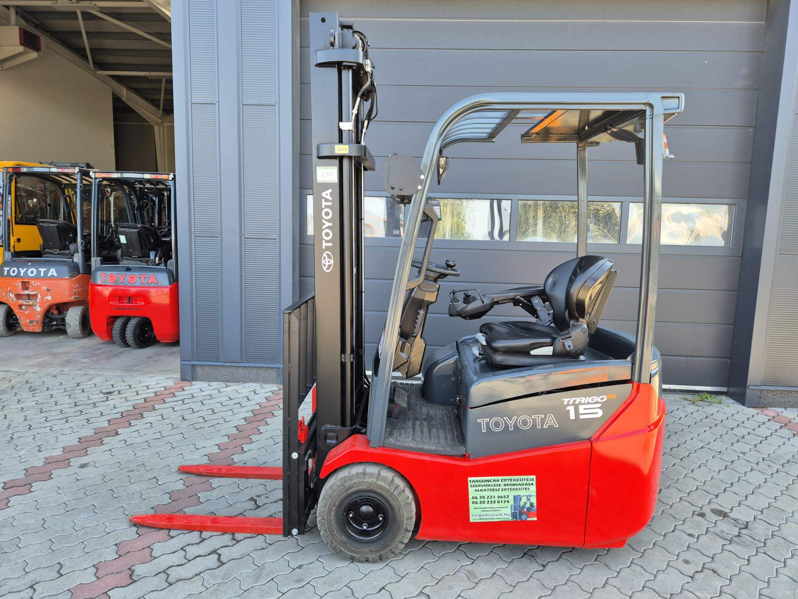 Eladó Toyota 7FBEST 15 típusú elektromos homlokvillás targonca, 1,5 t teherbírás, 5,5 m emelési magasság, 1,8 m szabademeléssel, 24V/850Ah Hawker akkumulátorral, töltővel, oldalmozgatóval, munkalámpával, kitűnő állapotban. (230)