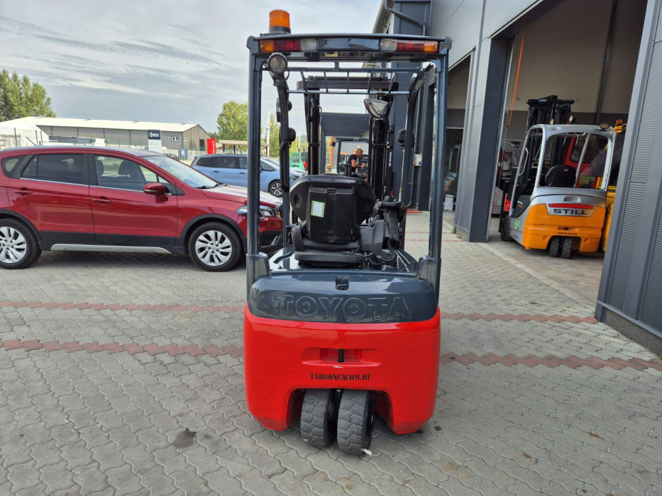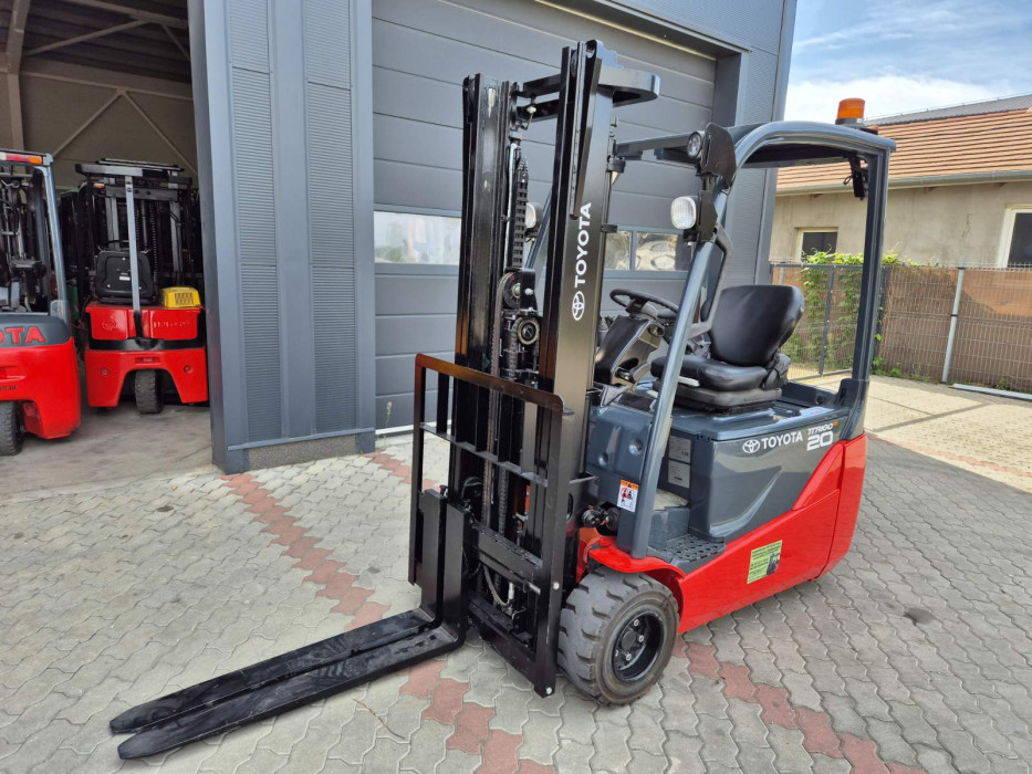 Eladó Toyota 8FBE 20T típusú elektromos targonca, 2 t teherbírás, 3,3 m emelési magasság, 1,7 m szabademeléssel, 48V/750Ah Hawker akkumulátorral, töltővel, oldalmozgatóval, nyommentes abroncsokkal, munkalámpával, kitűnő állapotban. (232)