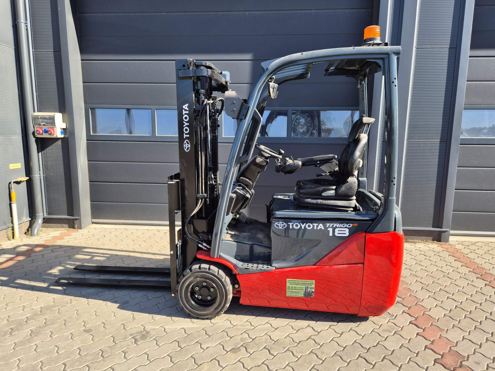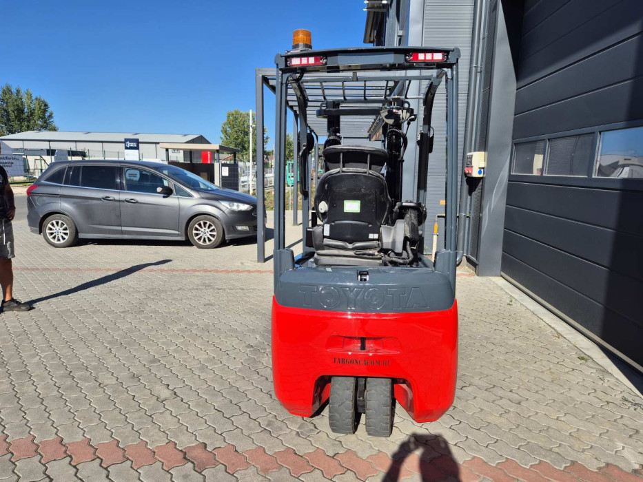 Eladó Toyota 8FBEK 18T típusú elektromos targonca, 1,8 t teherbírás, 3,03 m emelési magasság, 1,55 m szabademeléssel, 48V/650Ah Hawker akkumulátorral, töltővel, 5419 üzemórával, nyommentes abroncsokkal, munkalámpával, kitűnő állapotban. (233)