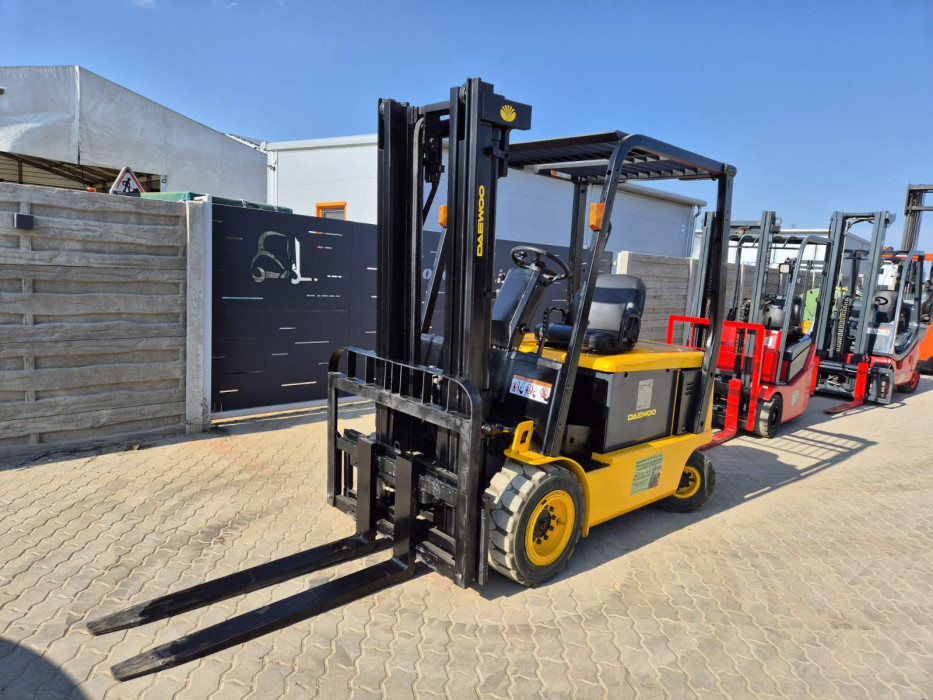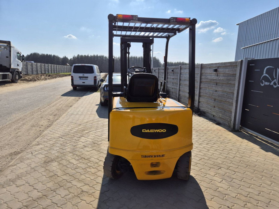 Eladó Daewoo B25X típusú elektromos targonca, 2,5 t teherbírás, 3,3 m emelési magasság, 80V/560Ah Hawker akkumulátorral, töltővel, oldalmozgatóval, munkalámpával, kitűnő állapotban. (196)