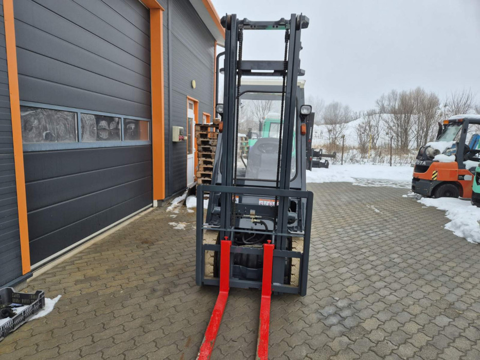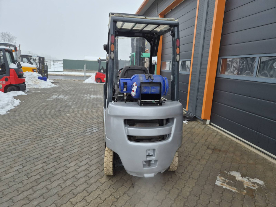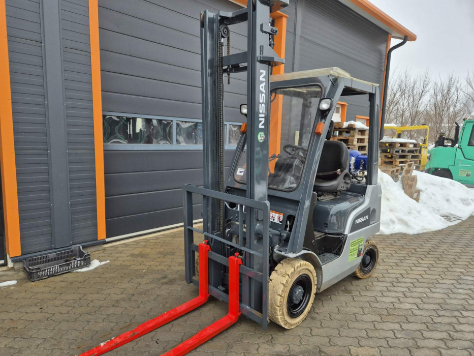 Eladó Nissan P1F1A 15D típusú gázüzemű targonca, 1,5 t teherbírás, 4,05 m emelési magasság, Nissan motorral, nyomot nem hagyó abroncsokkal, kitűnő állapotban. (197)