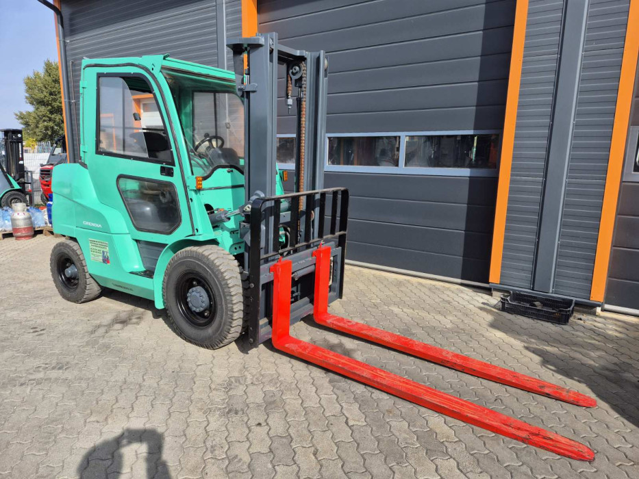 Eladó Mitsubishi FD 40NT típusú diesel targonca, 4 t teherbírás, 3,35 m emelési magasság, Mitsubishi motorral, 6647 üzemórával, oldalmozgatóval, kitűnő állapotban. (282)