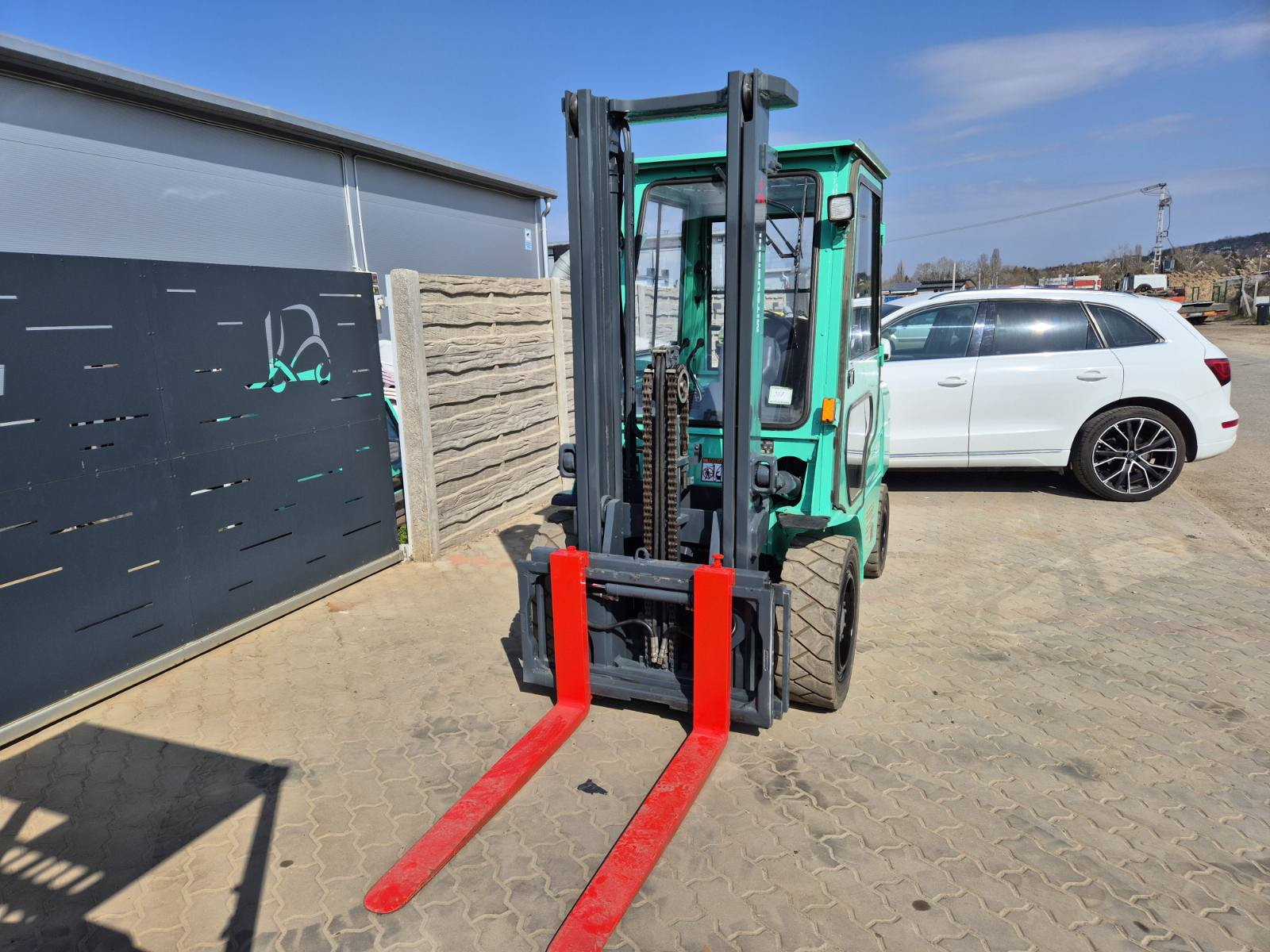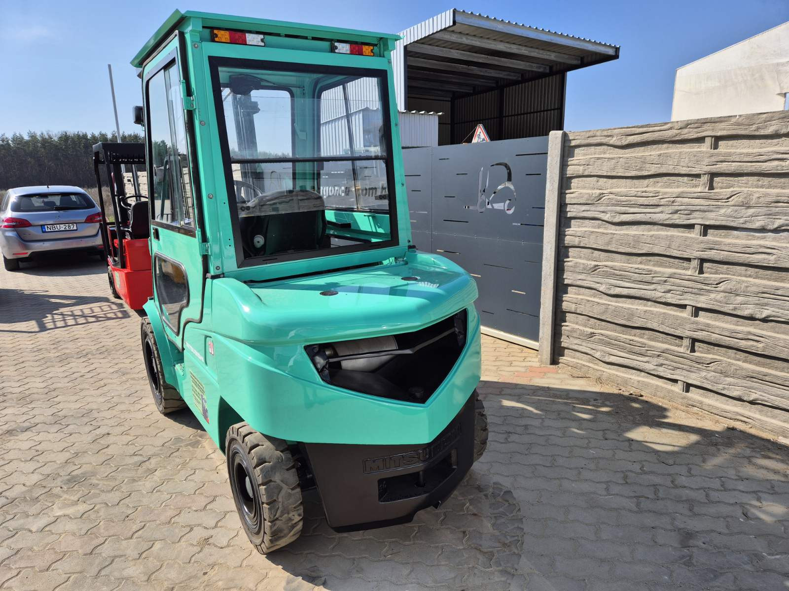 Eladó Mitsubishi FD 30N típusú diesel targonca, 3 t teherbírás, 3,3 m emelési magasság, 1,7 m szabademeléssel, Mitsubishi motorral, oldalmozgatóval, 9306 üzemórával, munkalámpával, ablaktörlővel, kitűnő állapotban. (358)
