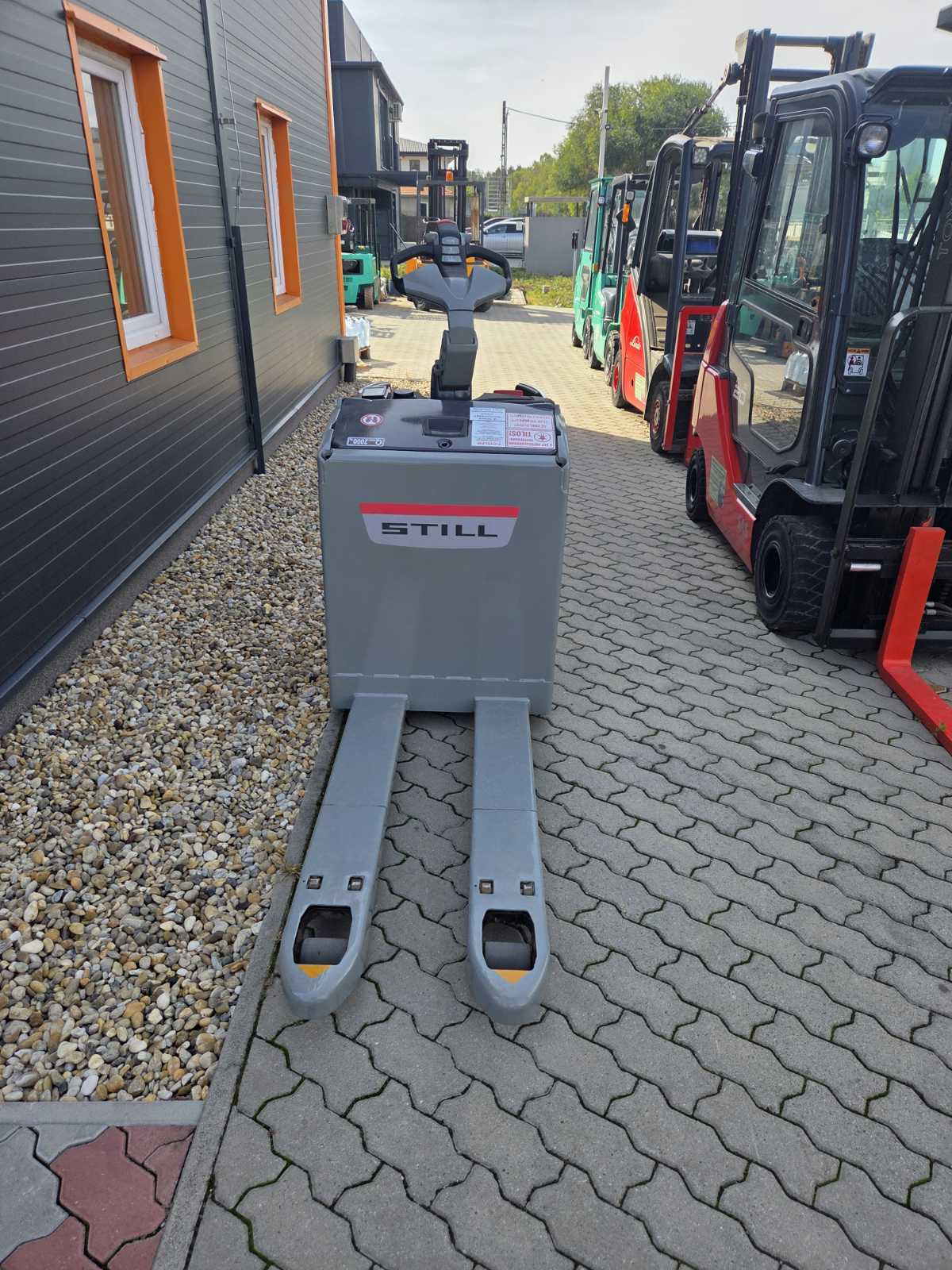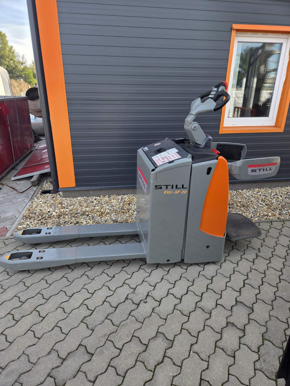 Eladó Still EXU SF20 típusú elektromos raklapemelő, 2 t teherbírás, 24V akkumulátorral, töltővel, felálló platformmal. kitűnő állapotban. (495)