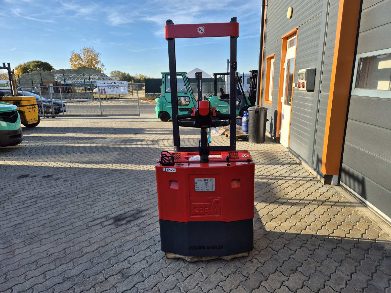 Eladó Careffe C1216 típusú elektromos gyalogkíséretű magasemelésű raklapemelő, 1 t teherbírás, 1,6 m emelési magasság, 12V/250Ah akkumulátorral, töltővel, kitűnő állapotban. (T19)