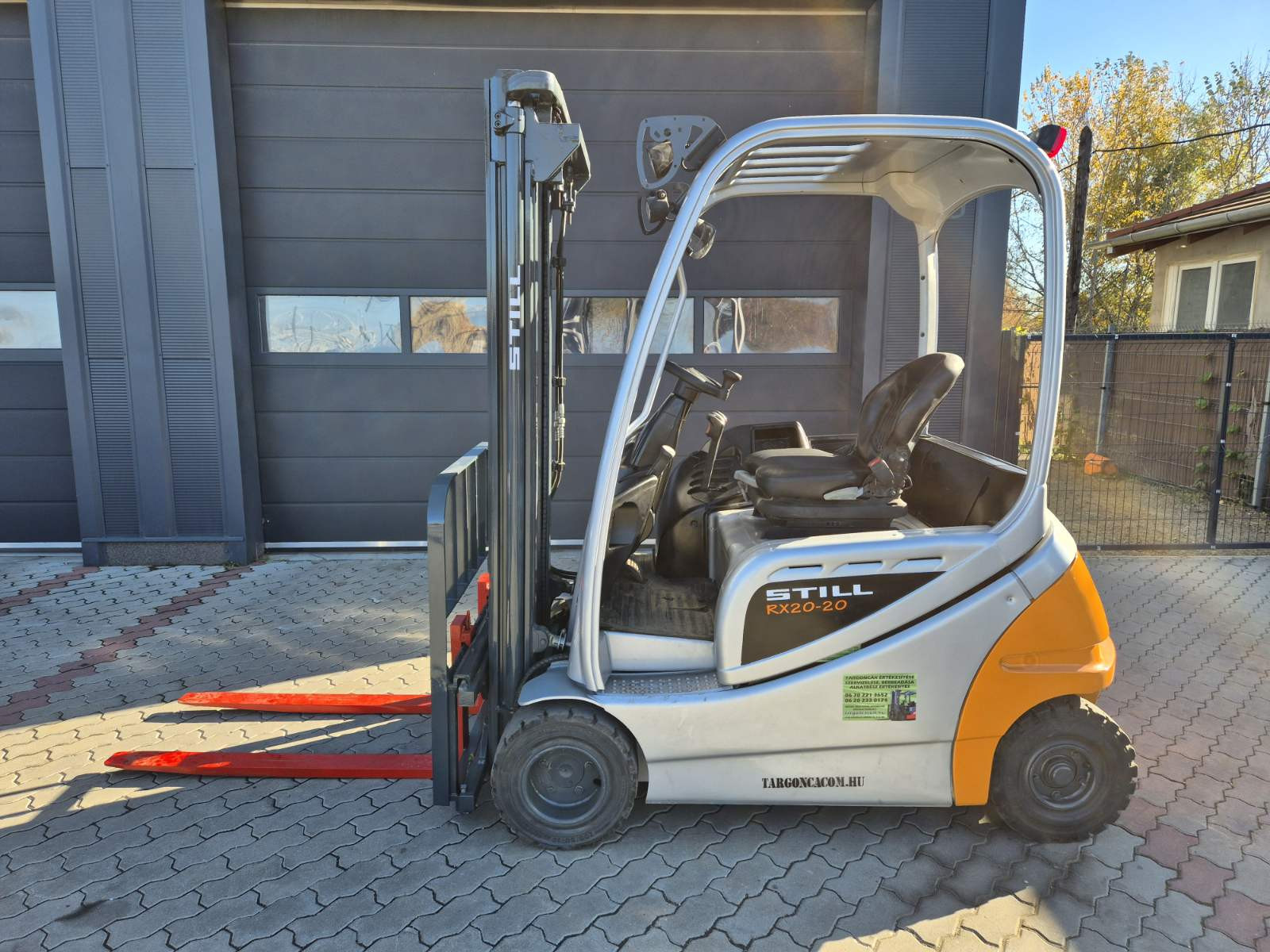 Eladó Still RX 20-20P típusú elektromos homlokvillás targonca, 2 t teherbírás, 3,5 m emelési magasság, 48V/625AH Hawker akkumulátorral, töltővel, 6537 üzemórával, oldalmozgatóval, munkalámpával, kitűnő állapotban. (T67)