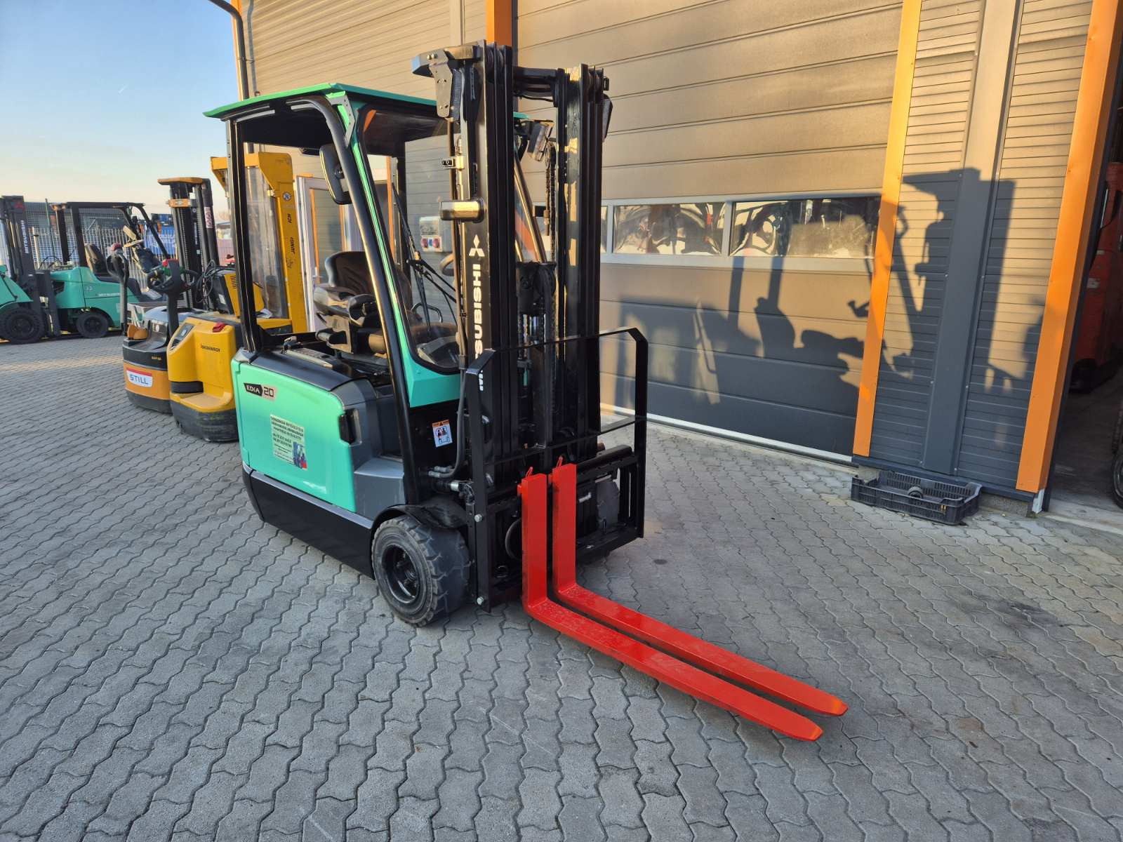 Eladó Mitsubishi FB 20ANT típusú elektromos homlokvillás targonca, 2 t teherbírás, 4,8 m emelési magasság, 1,6 m szabademeléssel, 48V/650Ah Hawker akkumulátorral, töltővel, 9297 üzemórával, oldalmozgatóval, munkalámpával, kitűnő állapotban. (T82)
