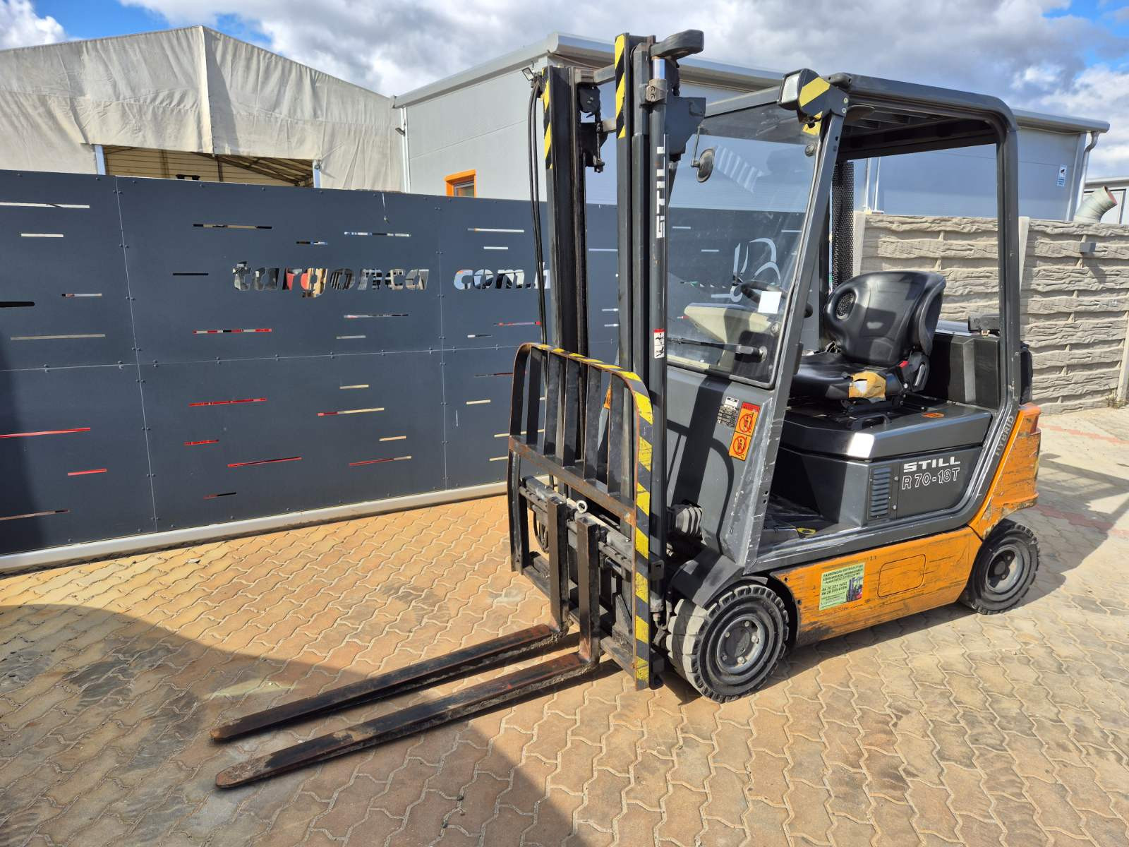 Eladó Still R 70-18 típusú gázüzemű homlokvillás targonca, 1,8 t teherbírás, 3,3 m emelési magasság, Volkswagen motorral, oldalmozgatóval, munkalámpával, kitűnő állapotban. (T84)
