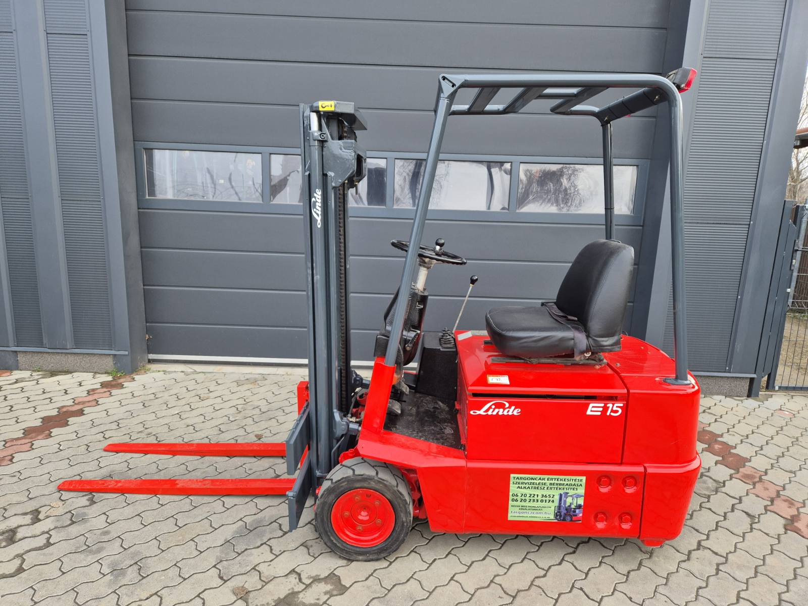 Eladó Linde E15 típusú elektromos homlokvillás targonca, 1,5 teherbírás, 2,8 m emelési magasság, 24V/850Ah Hawker akkumulátorral, töltővel, kítűnő állapotban. (37)