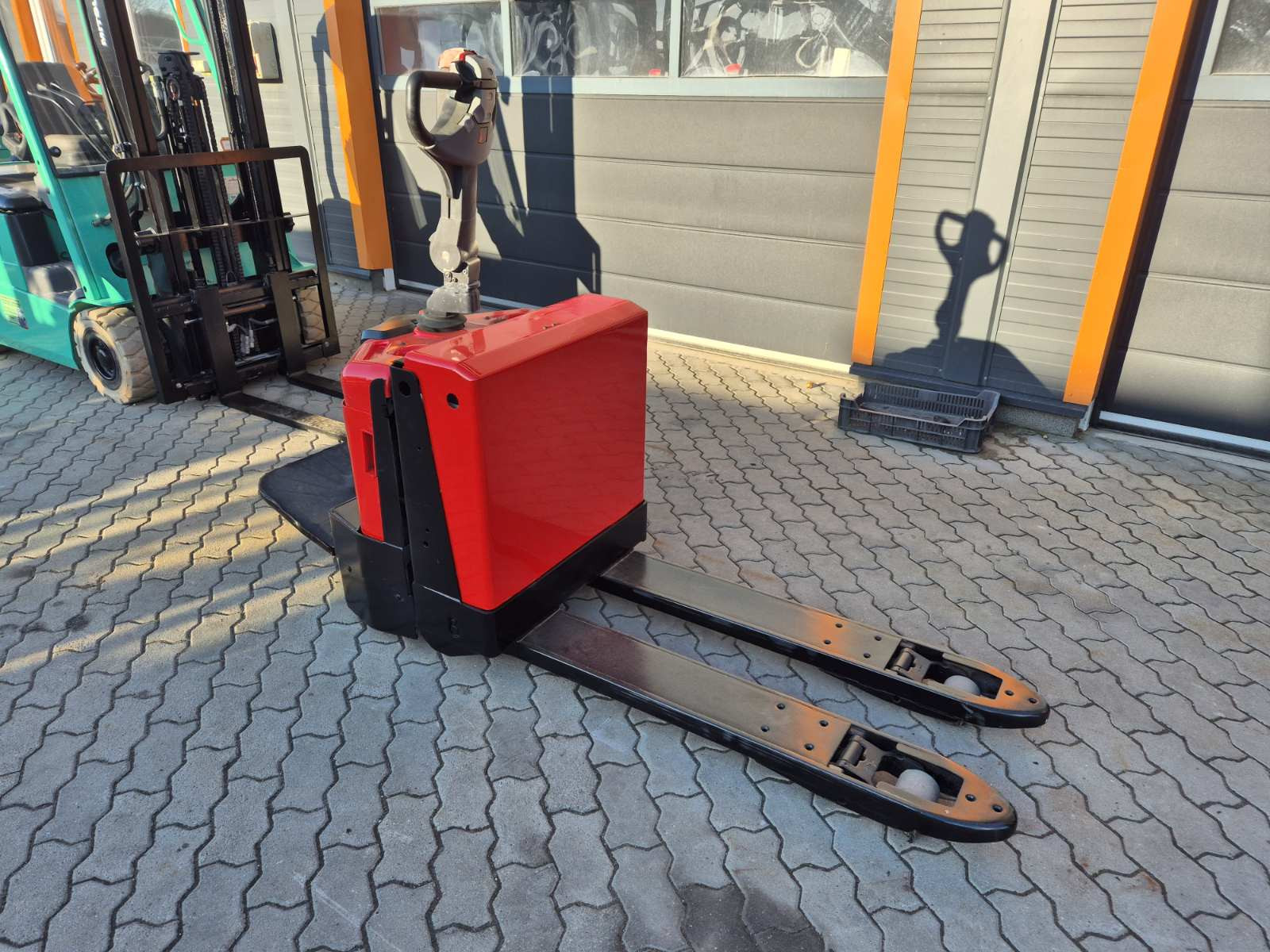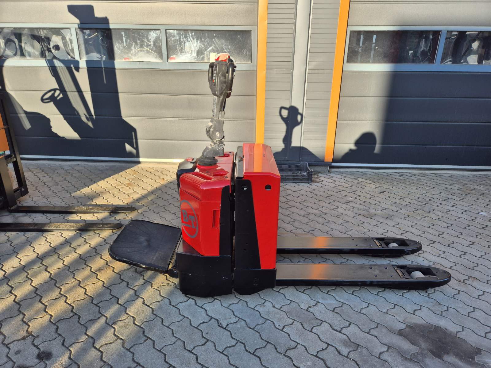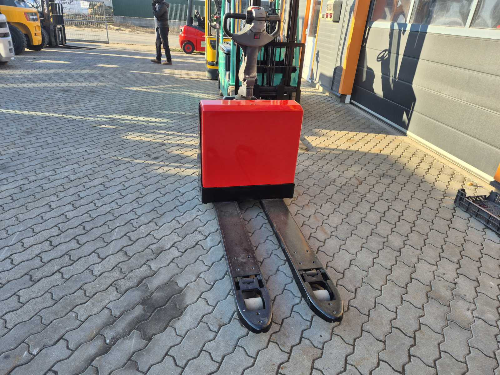 Eladó BT LPE 200 típusú elektromos gyalogkíséretű raklapemelő, 2 t teherbírás, 24V/280Ah Hawker akkumulátorral, töltővel, 7046 üzemórával, felálló platformmal, kitűnő állapotban. (19)