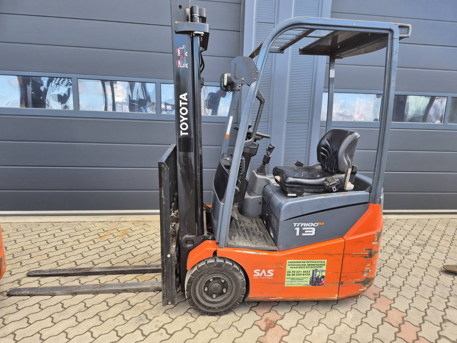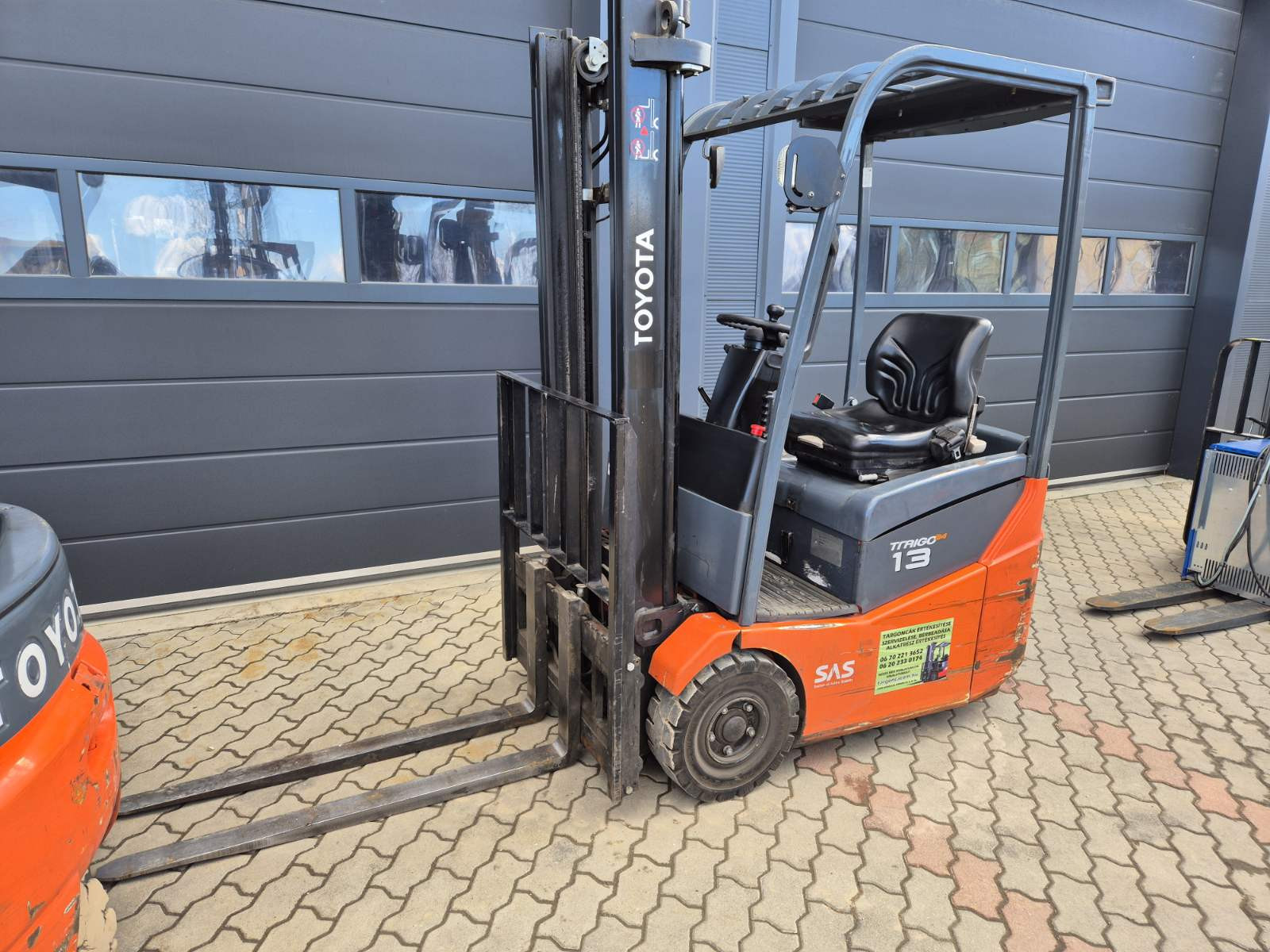 Eladó Toyota 7FBEST 13 típusú elektromos homlokvillás targonca, 1,3 t teherbírás, 3,3 m emelési magasság, 24V/735Ah Hawker akkumulátorral, töltővel, 8428 üzemórával, oldalmozgatóval, munkalámpával, kitűnő állapotban. (242)