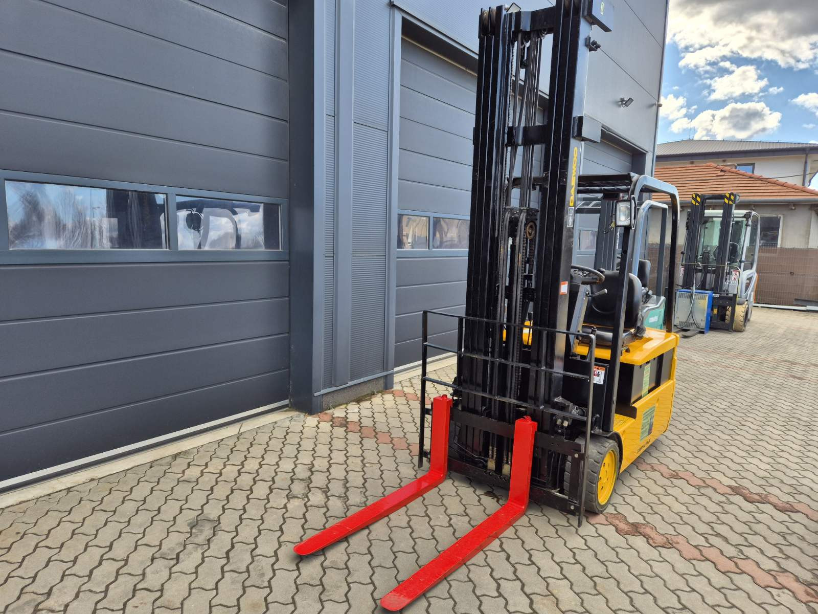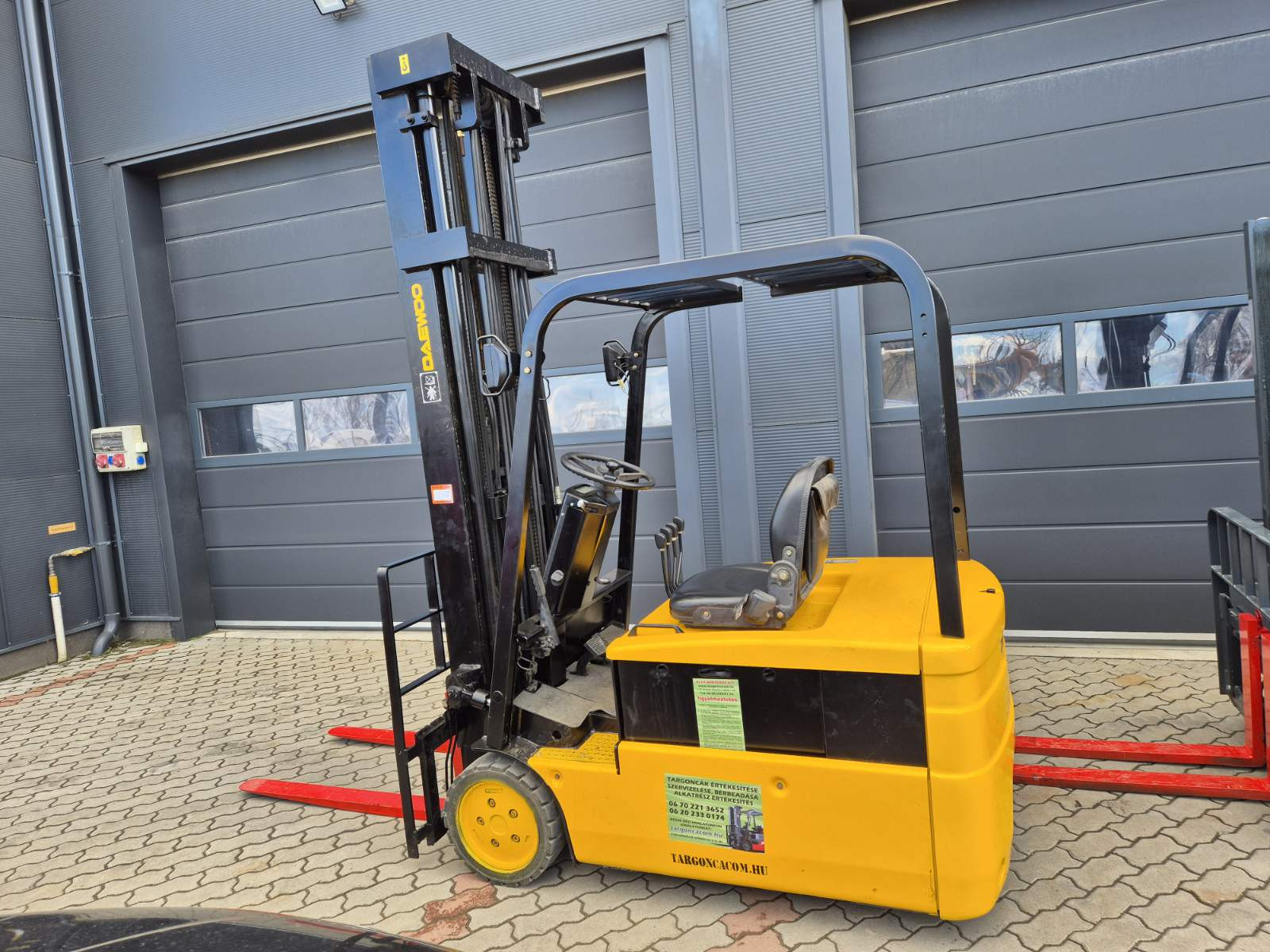 Eladó Daewoo B18-T típusú elektromos homlokvillás targonca, 1,8 t teherbírás, 6,2 m emelési magasság, 2,3 m szabademeléssel, 48V/750Ah Hawker akkumulátorral, töltővel, 3113 üzemórával, oldalmozgatóval, munkalámpával, kitűnő állapotban. (T09)