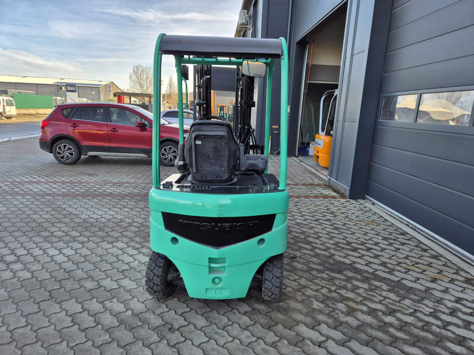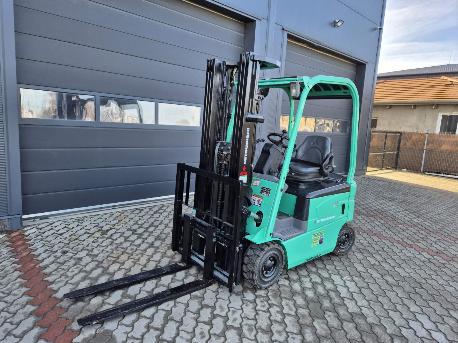 Eladó Mitsubishi EFB 16N típusú elektromos homlokvillás targonca, 1,6 t teherbírás, 4,75 m emelési magasság, 1,7 m szabademeléssel, 48V/650Ah Hawker akkumulátorral, töltővel, 6157 üzemórával, oldalmozgatóval, munkalámpával, kitűnő állapotban. (T14)