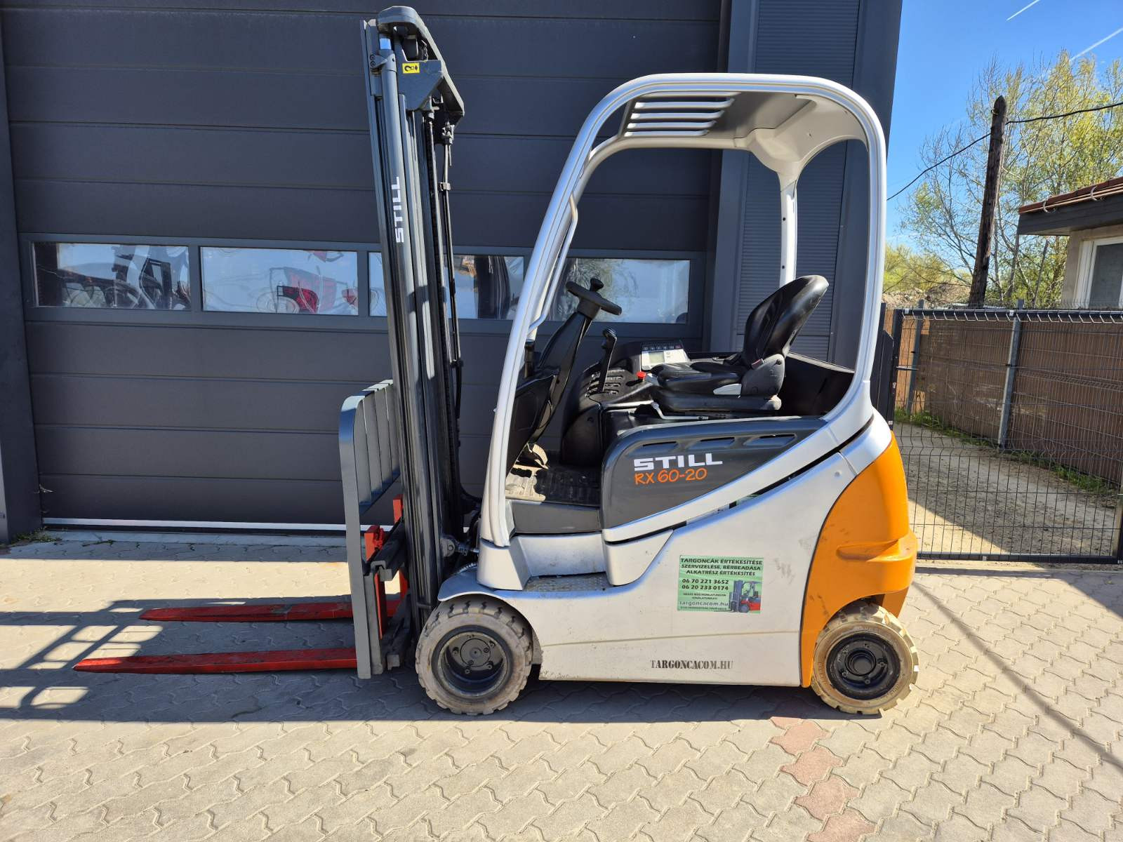 Eladó Still RX 60-20 típusú elektromos homlokvillás targonca, 2 t teherbírás, 3,85 m emelési magasság, 80V/465Ah Hawker akkumulátorral, töltővel, 5948 üzemórával, oldalmozgatóval, nyommentes abroncsokkal, kitűnő állapotban. (T35)