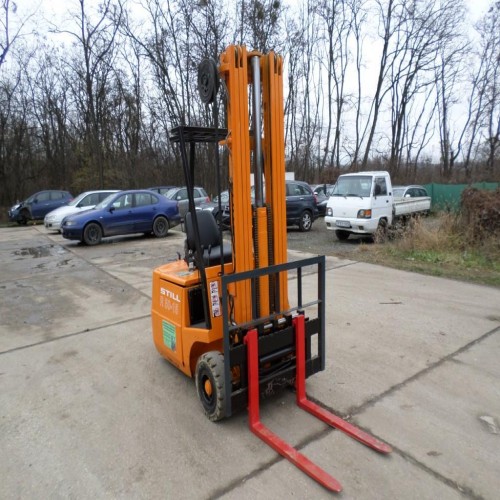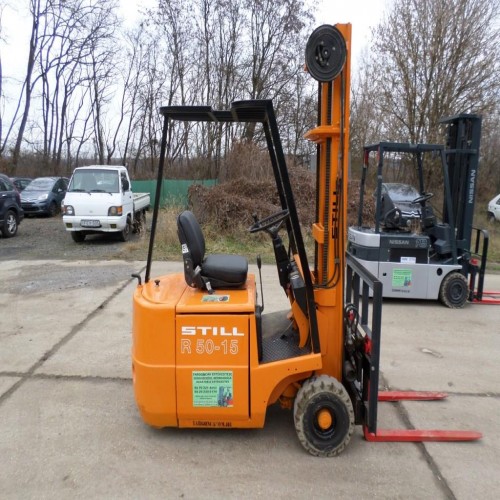 Eladó egy Still R50-15 típusú elektromos targonca, 1,5 t teherbírás, 5,55 m emelési magasság, triplex toronnyal, 1,8 m szabademeléssel, 24 V/ 850 Ah Hawker akkumulátorral, töltővel, oldalmozgatóval, kitűnő állapotban. (333)