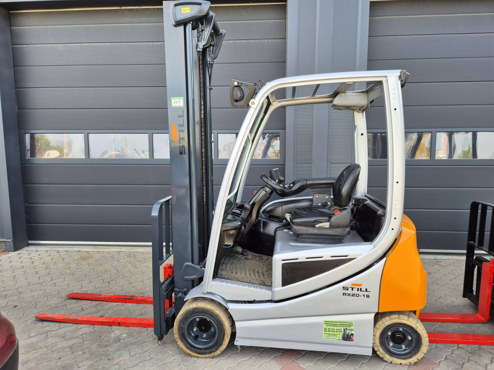 Eladó Still RX 20-16 típusú elektromos targonca, 1,6 t teherbírás, 4,2 m emelési magasság, 48V/650Ah Hawker akkumulátorral, töltővel, 7790 üzemórával, oldalmozgatóval, hátsó irányfénnyel, munkalámpával, szivargyújtóval, kitűnő állapotban. (149)