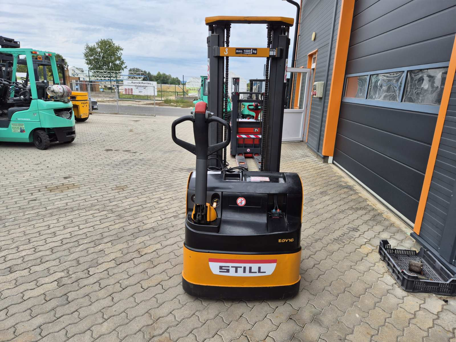 Eladó Still EGV 16 típusú elektromos magasemelésű gyalogkíséretű raklapemelő, 1,6 t teherbírás, 2,95 m emelési magasság, 24V/280AH Hawker akkumulátorral, töltővel, 2817 üzemórával, kitűnő állapotban. (164)