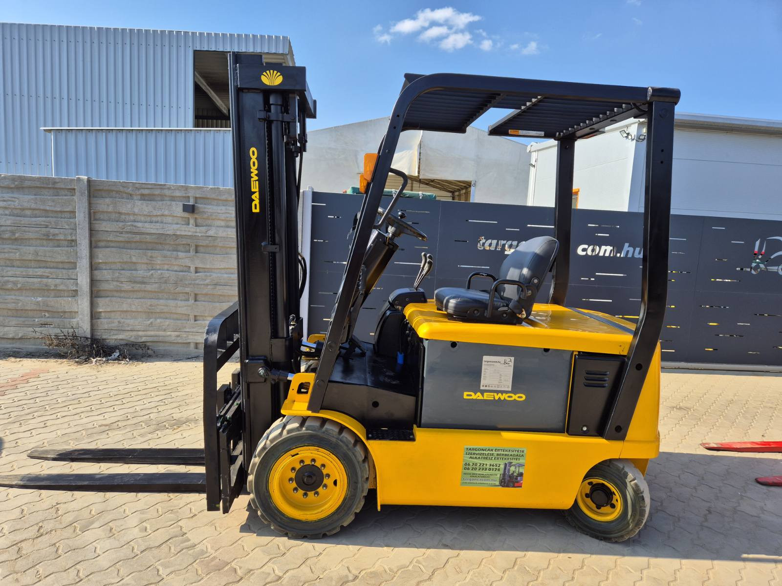 Eladó Daewoo B25X típusú elektromos targonca, 2,5 t teherbírás, 3,3 m emelési magasság, 80V/560Ah Hawker akkumulátorral, töltővel, oldalmozgatóval, munkalámpával, kitűnő állapotban. (196)