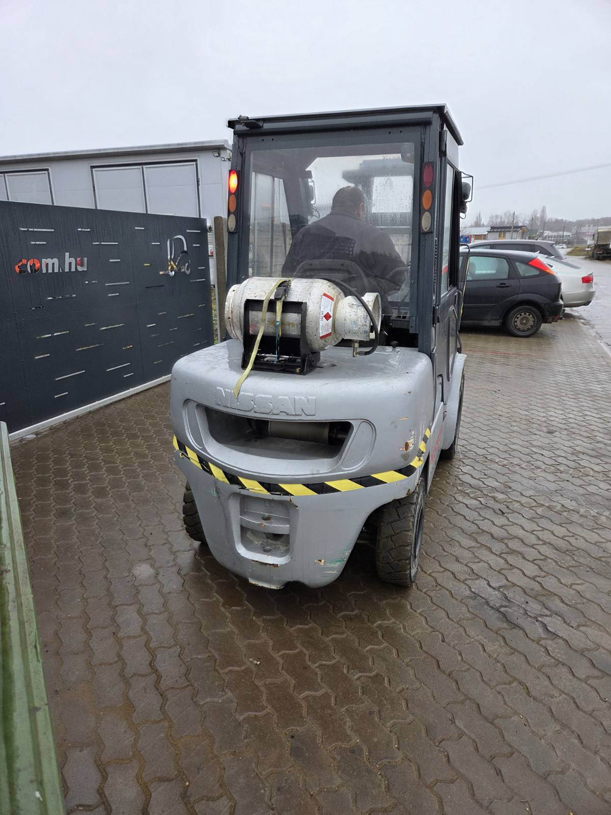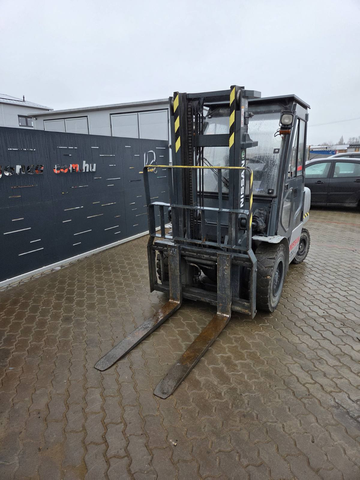 Eladó Nissan UGL02A35DU típusú gázüzemű homlokvillás targonca, 3,5 t teherbírás, 3 m emelési magasság, Nissan motorral, 9750 üzemórával, oldalmozgatóval, munkalámpával, végig szervizelt állapotban, friss nagyszervíz után, kitűnő állapotban. (1VCs)