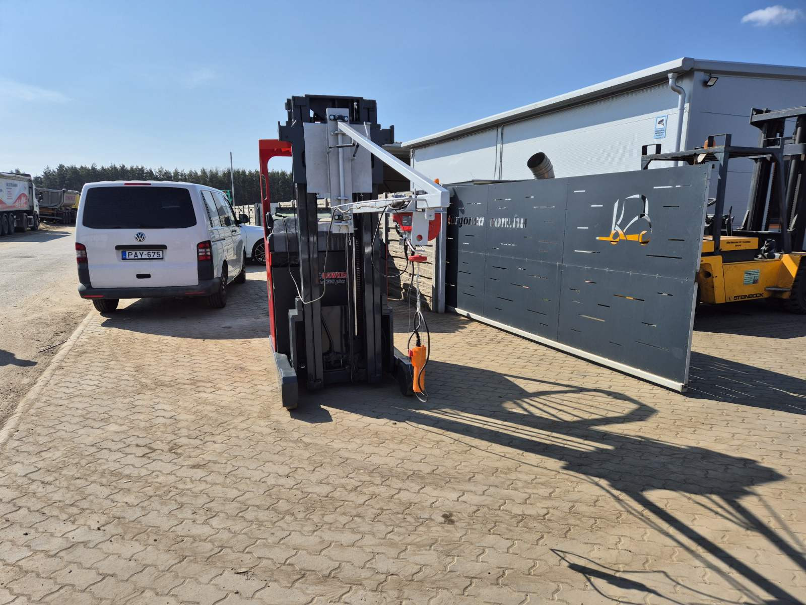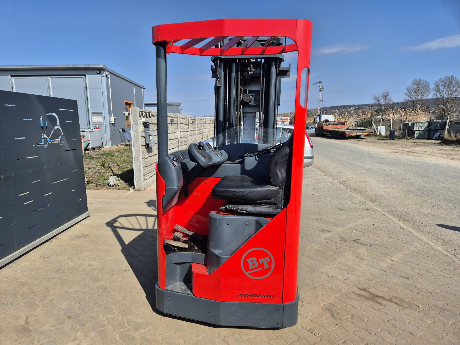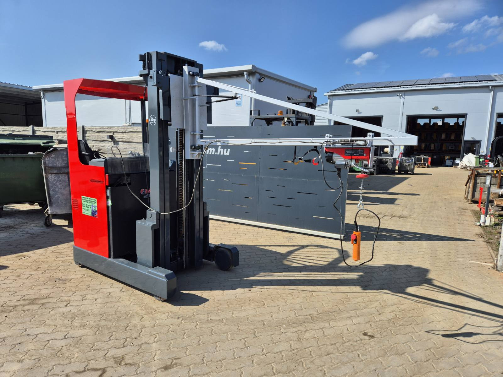 Eladó BT RR M14 típusú elektromos tolóoszlopos targonca, 1,4 t teherbírással, motor, váltó kiemelő daruval, daru teherbírása 250 kg, 5,4 m emelési magasság, 1,7 m szabademeléssel, 48V/650Ah Hawker akkumulátorral, töltővel, 4663 üzemórával, kitűnő állapotban. (299)