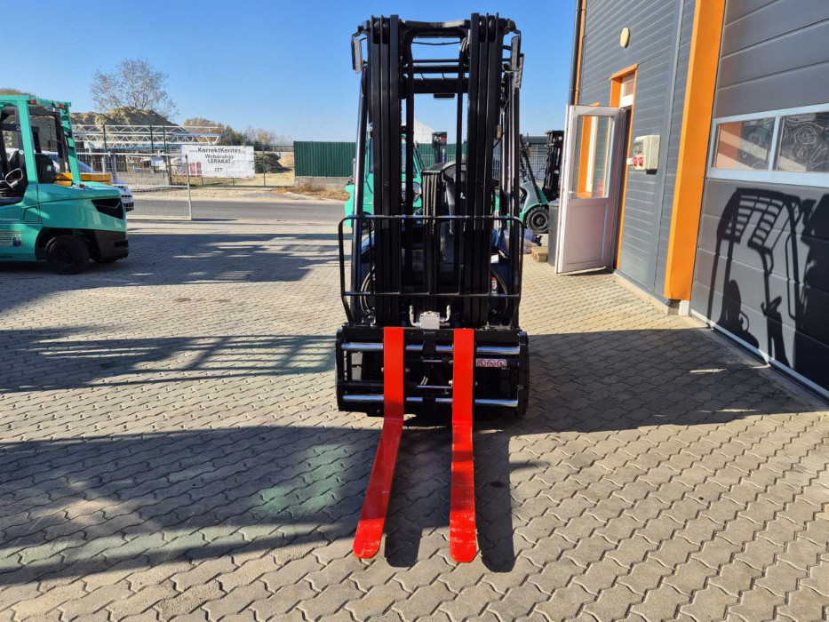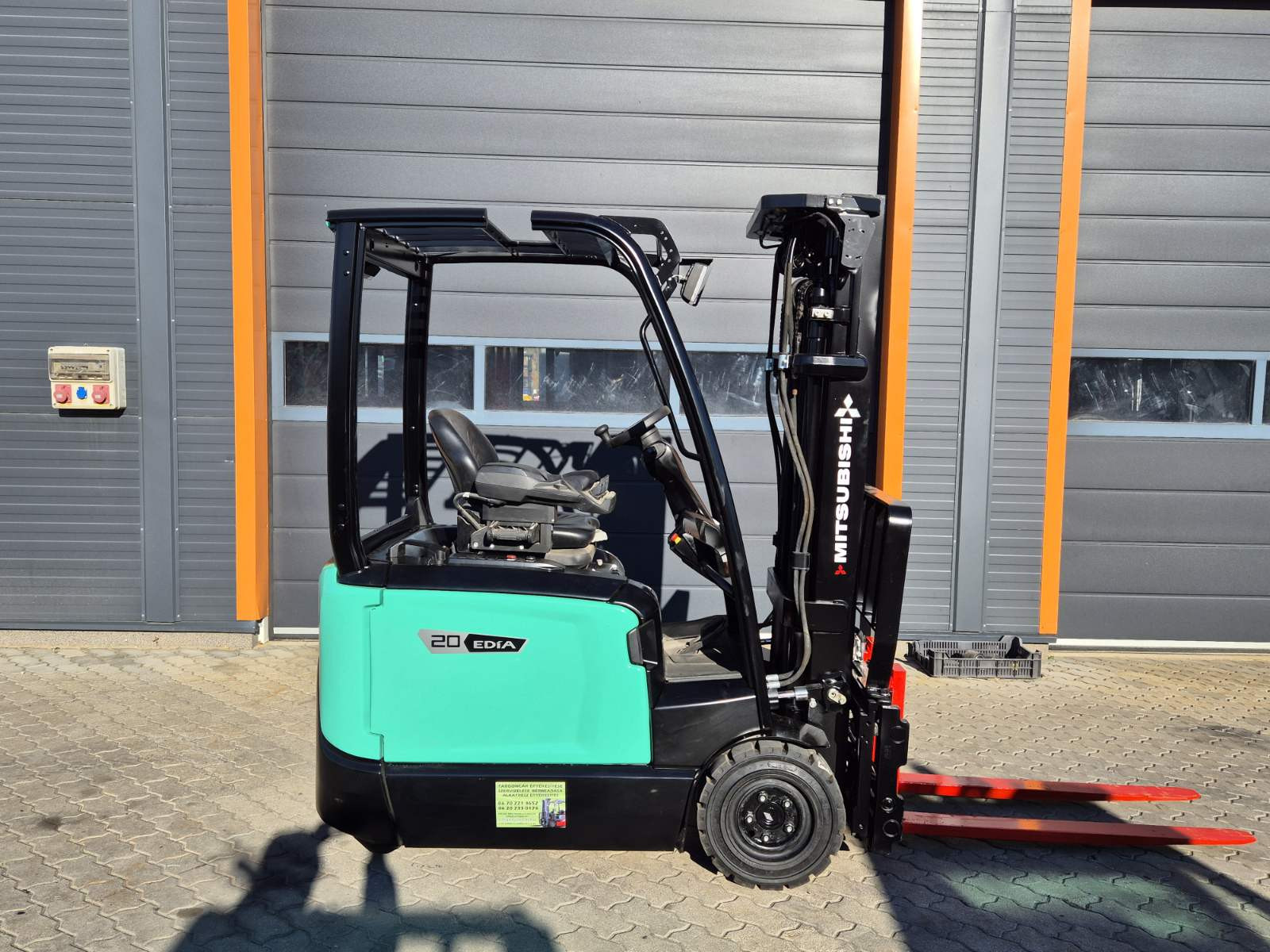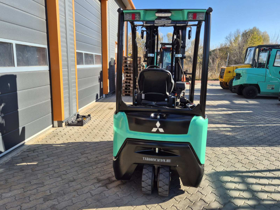 Eladó Mitsubishi FB 14ANT típusú elektromos targonca, 1,4 t teherbírás, 4,75 m emelési magasság, 1,6 m szabademeléssel, 48V/500Ah Hawker akkumulátorral, töltővel, 6425 üzemórával, oldalmozgatóval, munkalámpával, kitűnő állapotban. (448)