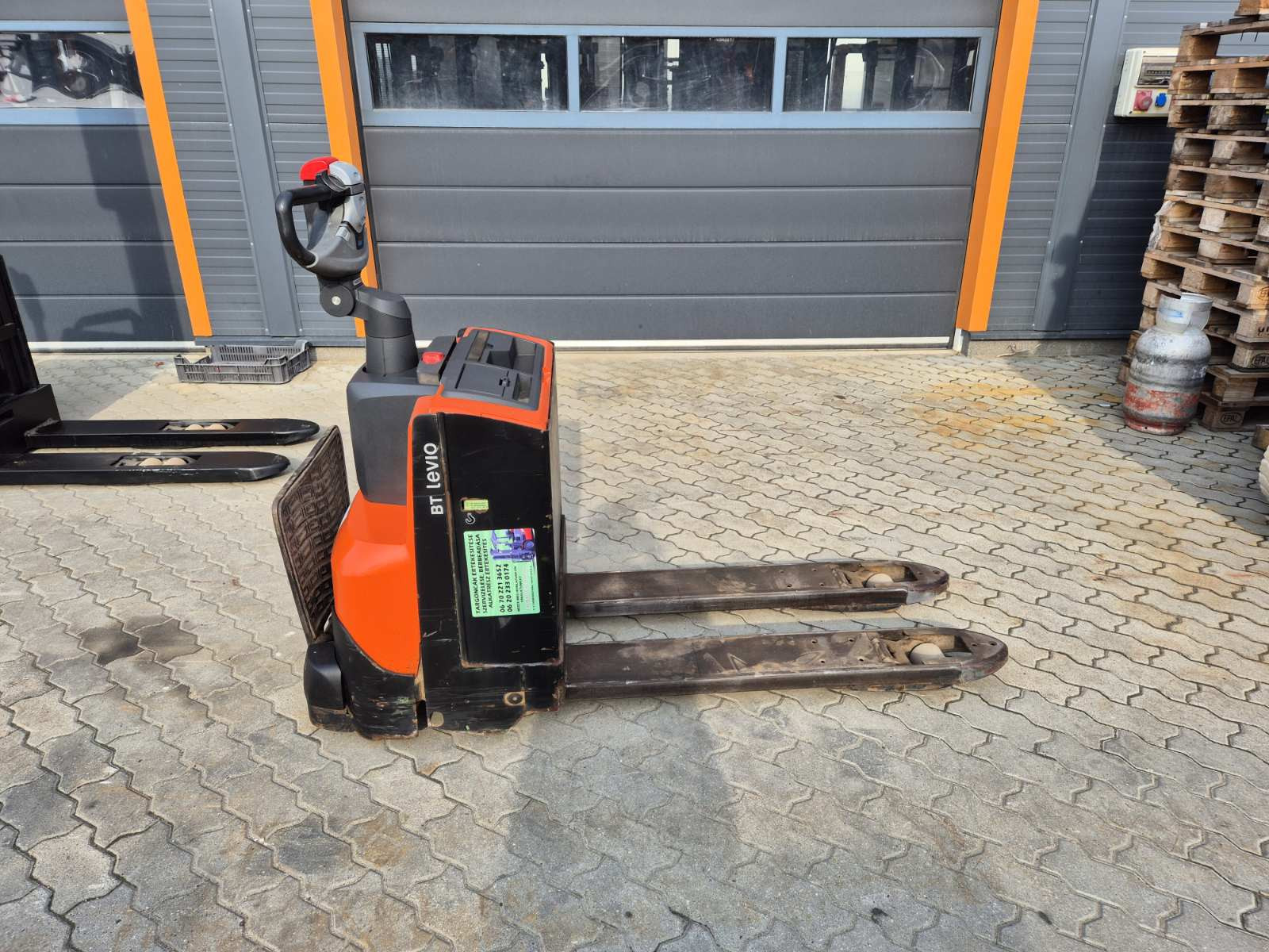 Eladó Bt LWE 200 típusú elektromos gyalogkíséretű raklapemelő, 2 t teherbírás, 24V/280Ah Hawker akkumulátorral, töltővel, 1942 üzemórával, kitűnő állapotban. (57)