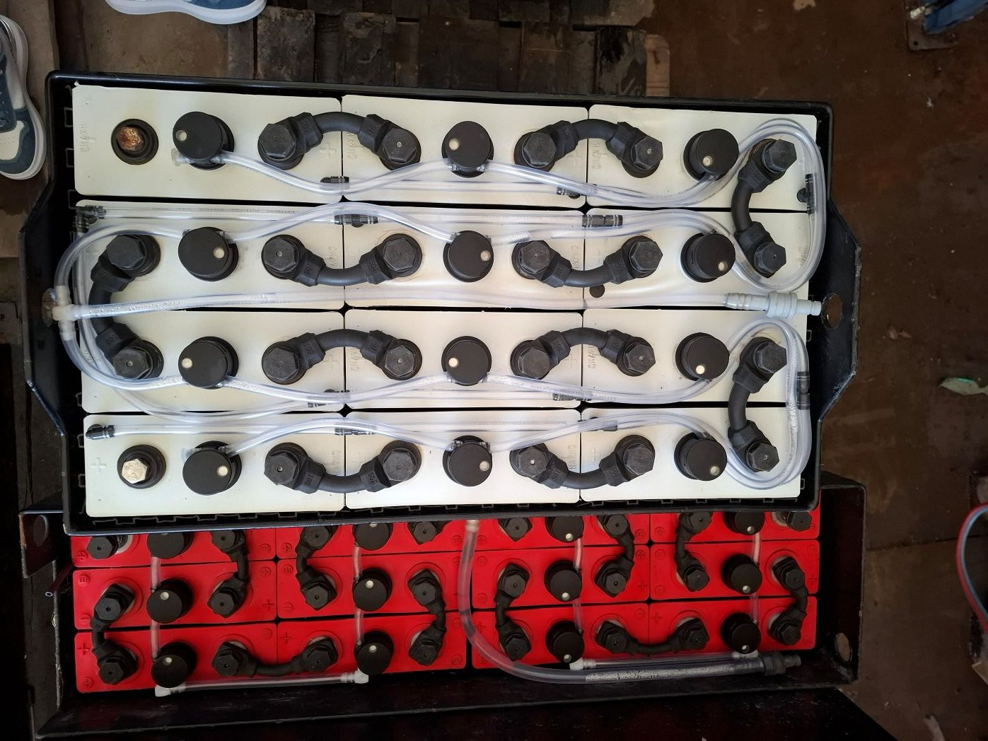 Eladó használt, bevizsgált garanciális 24V 560Ah akkumulátor automata vízfeltöltő rendszerrel.