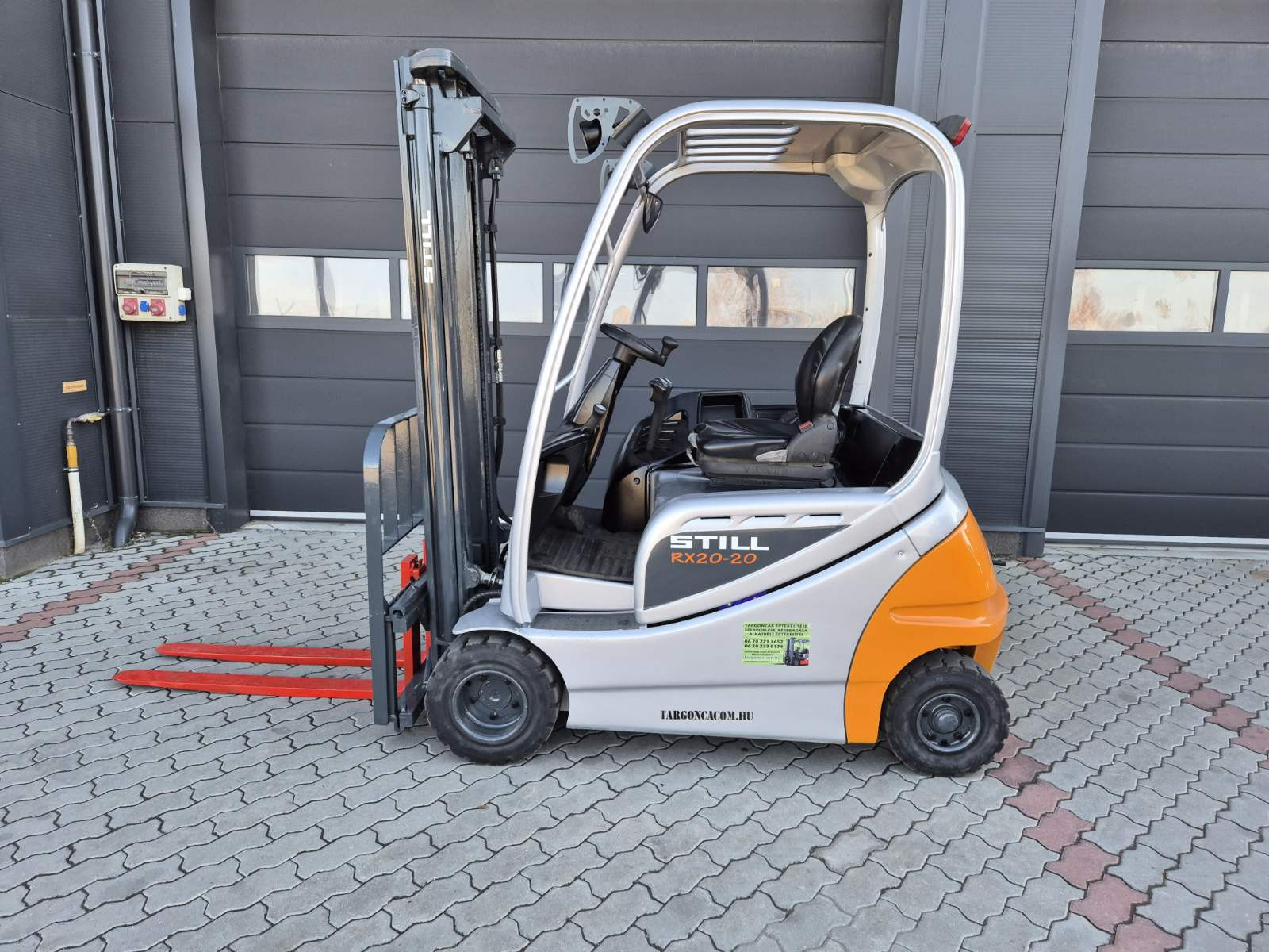 Eladó Still RX 20-20P típusú elektromos homlokvillás targonca, 2 t teherbírás, 3,5 m emelési magasság, 48V/625AH Hawker akkumulátorral, töltővel, 9232 üzemórával, oldalmozgatóval, munkalámpával, kitűnő állapotban. (T06)