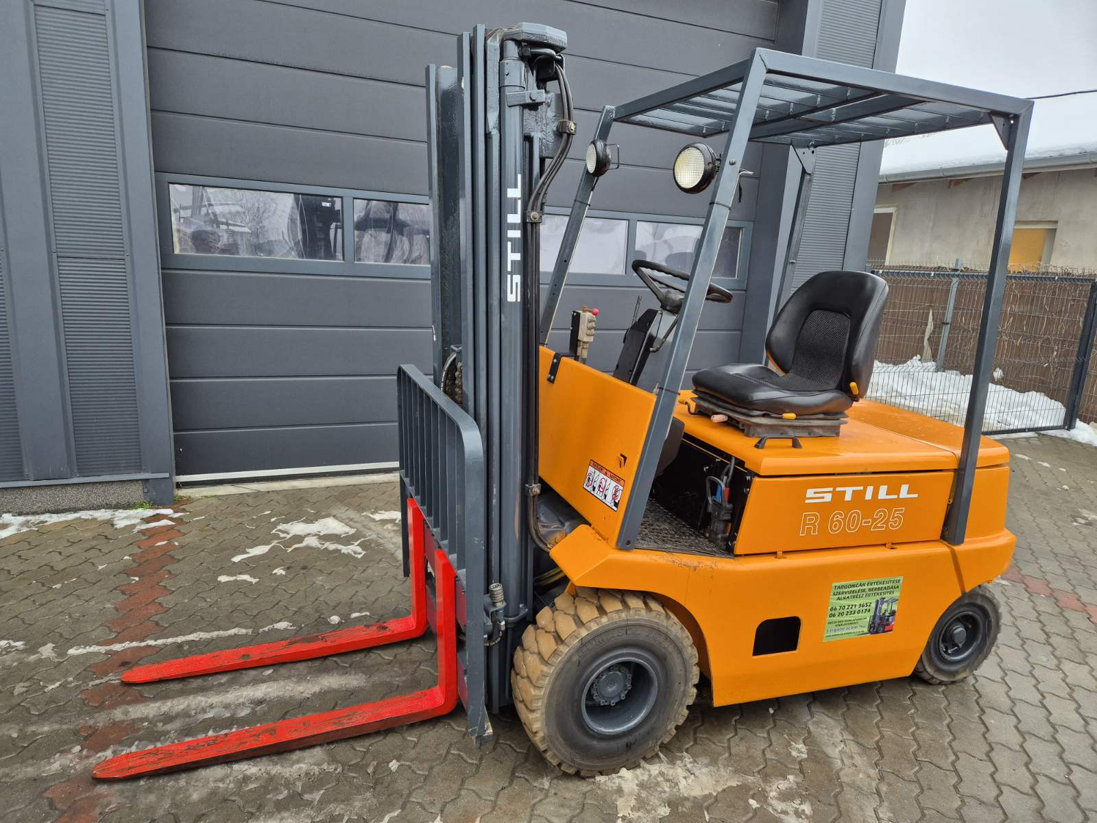 Eladó Still R 60-25 típusú elektromos homlokvillás targonca, 2,5 t teherbírás, 4,6 m emelési magasság, 1,6 m szabademeléssel, 80V/500Ah Hawker akkumulátorral, töltővel, 7734 üzemórával, oldalmozgatóval, munkalámpával, kitűnő állapotban. (T103)