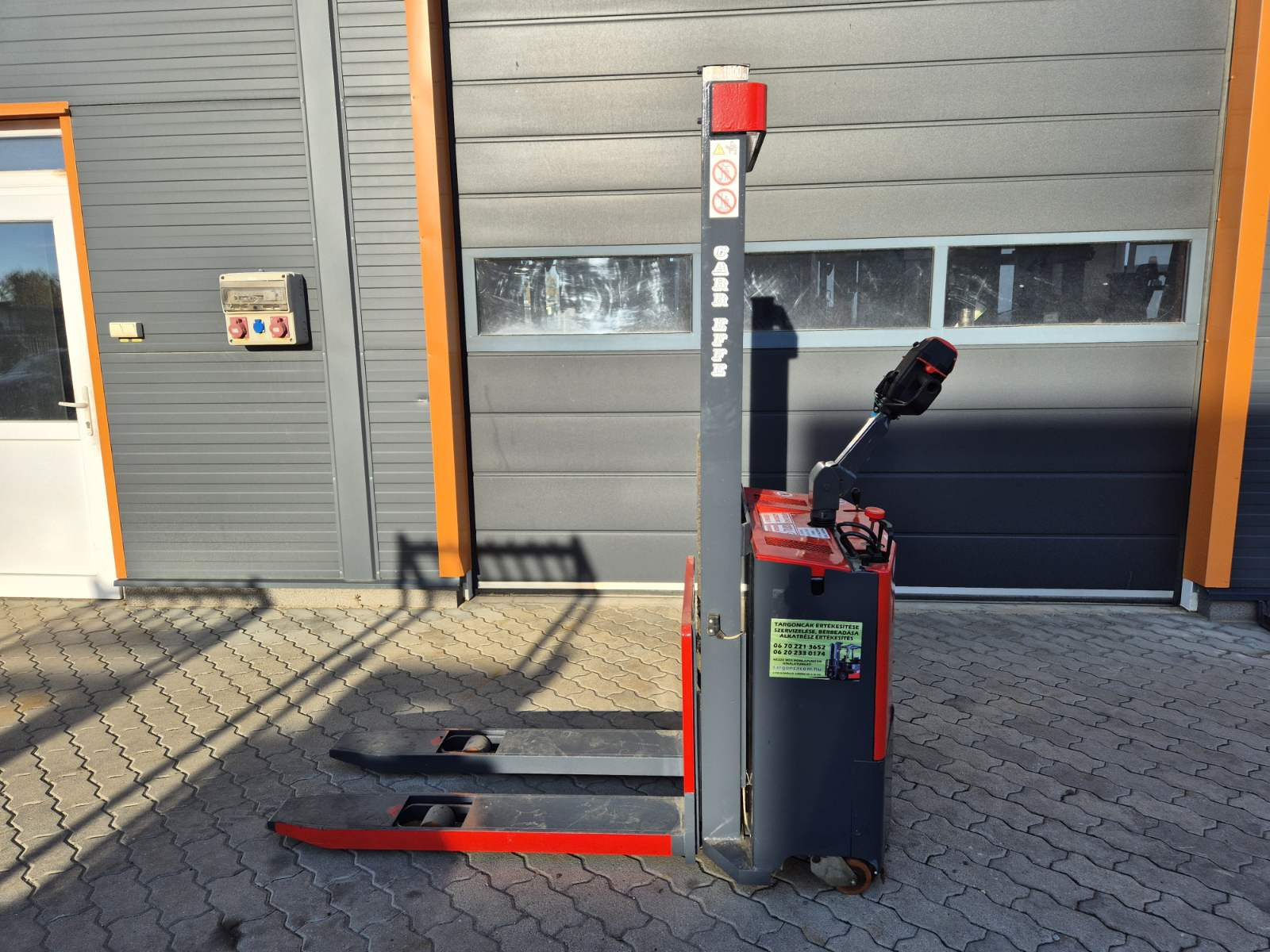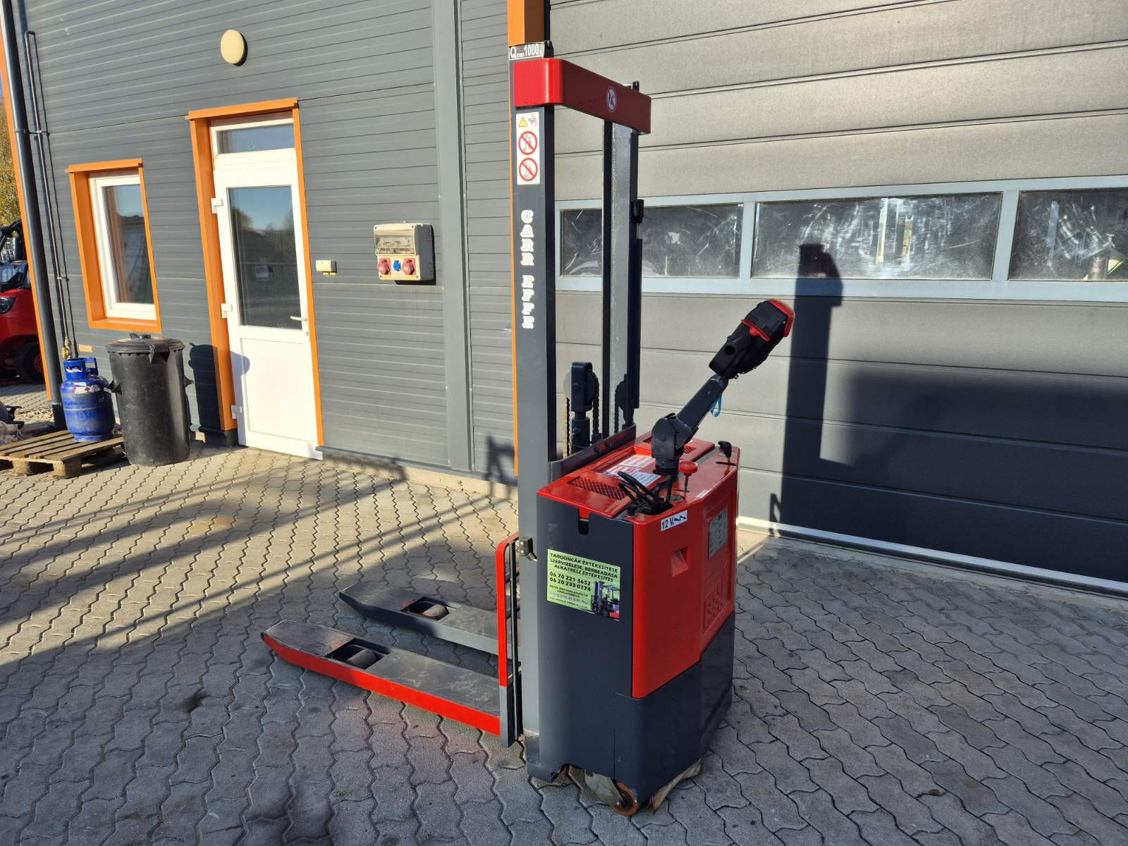 Eladó Careffe C1216 típusú elektromos gyalogkíséretű magasemelésű raklapemelő, 1 t teherbírás, 1,6 m emelési magasság, 12V/250Ah akkumulátorral, töltővel, kitűnő állapotban. (T19)