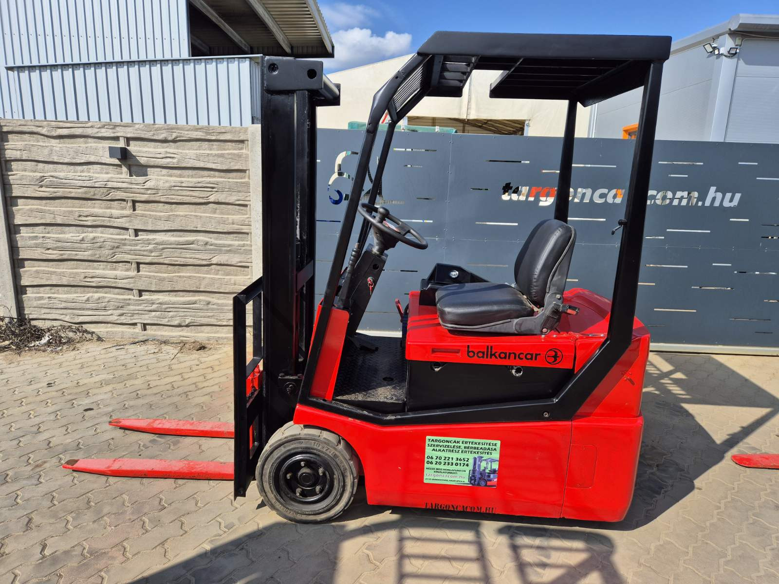 Eladó Balkancar EV 650 típusú elektromos homlokvillás targonca, 1,25 t teherbírás, 2,85 m emelési magasság, 48V/500Ah Hawker akkumulátorral, töltővel, 1,3 m szabademeléssel, 2764 üzemórával, kitűnő állapotban. (T70)