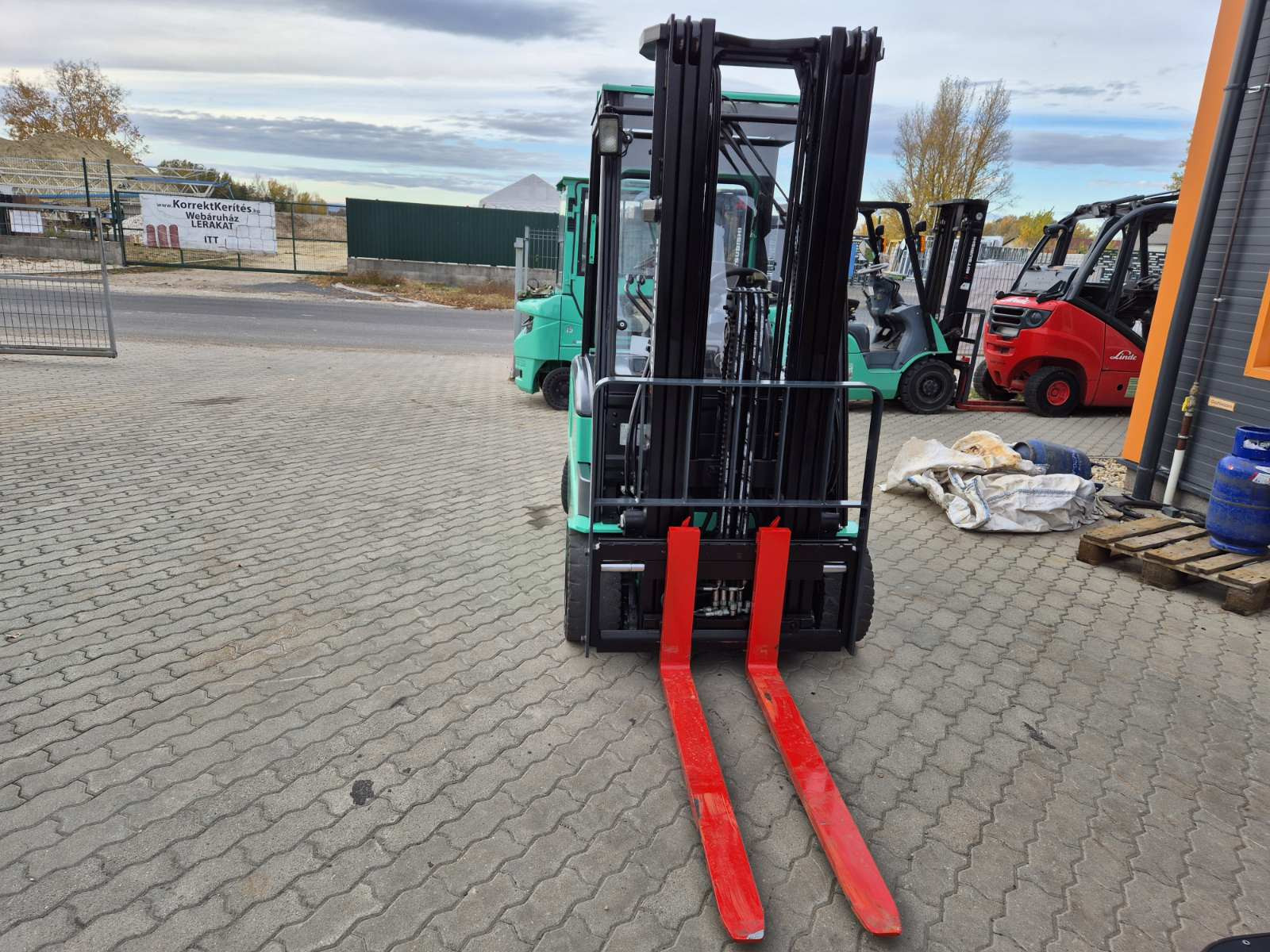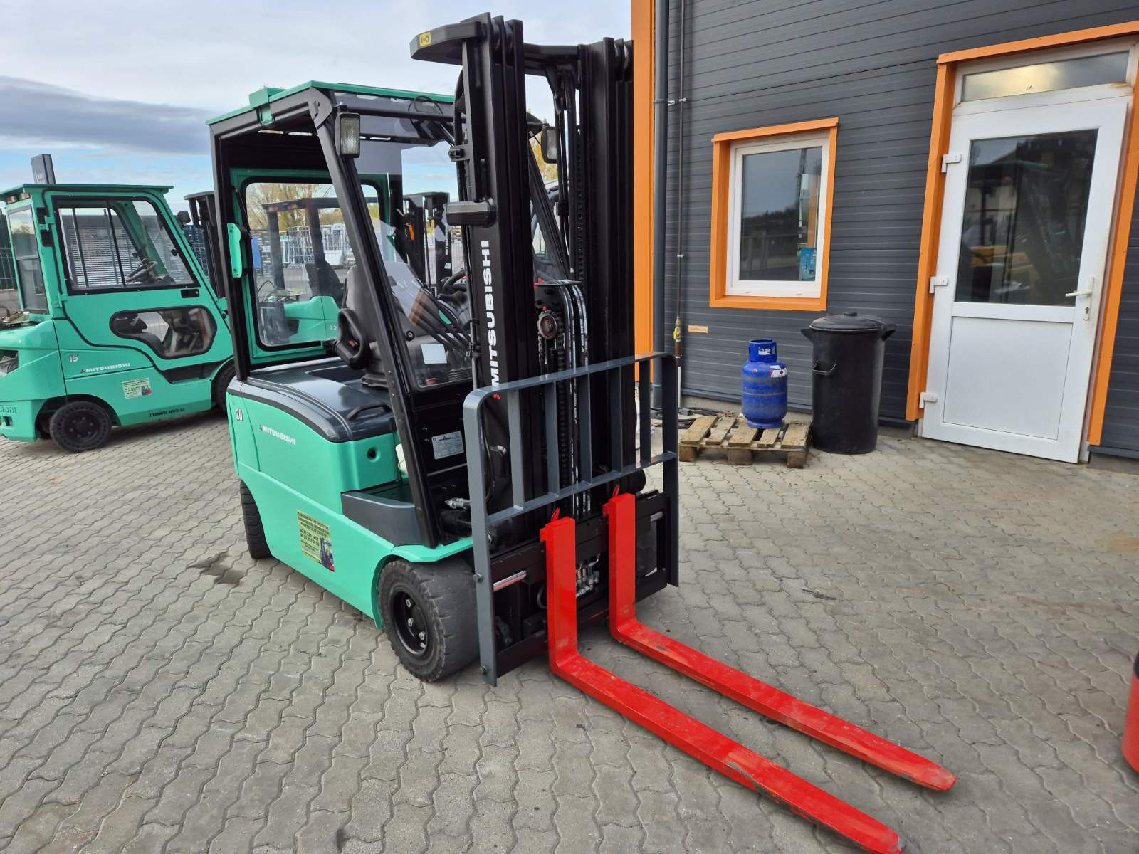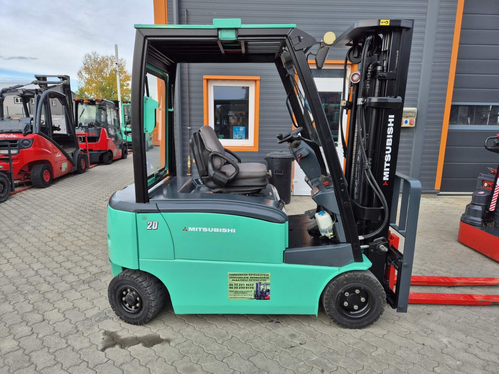 Eladó Mitsubishi FB 20PN típusú elektromos homlokvillás targonca, 2 t teherbírás, 4,8 m emelési magasság, 1,5 m szabademeléssel, 48V/750Ah Hawker akkumulátorral, töltővel, 2543 üzemórával, oldalmozgatóval, munkalámpával, kitűnő állapotban. (T81)