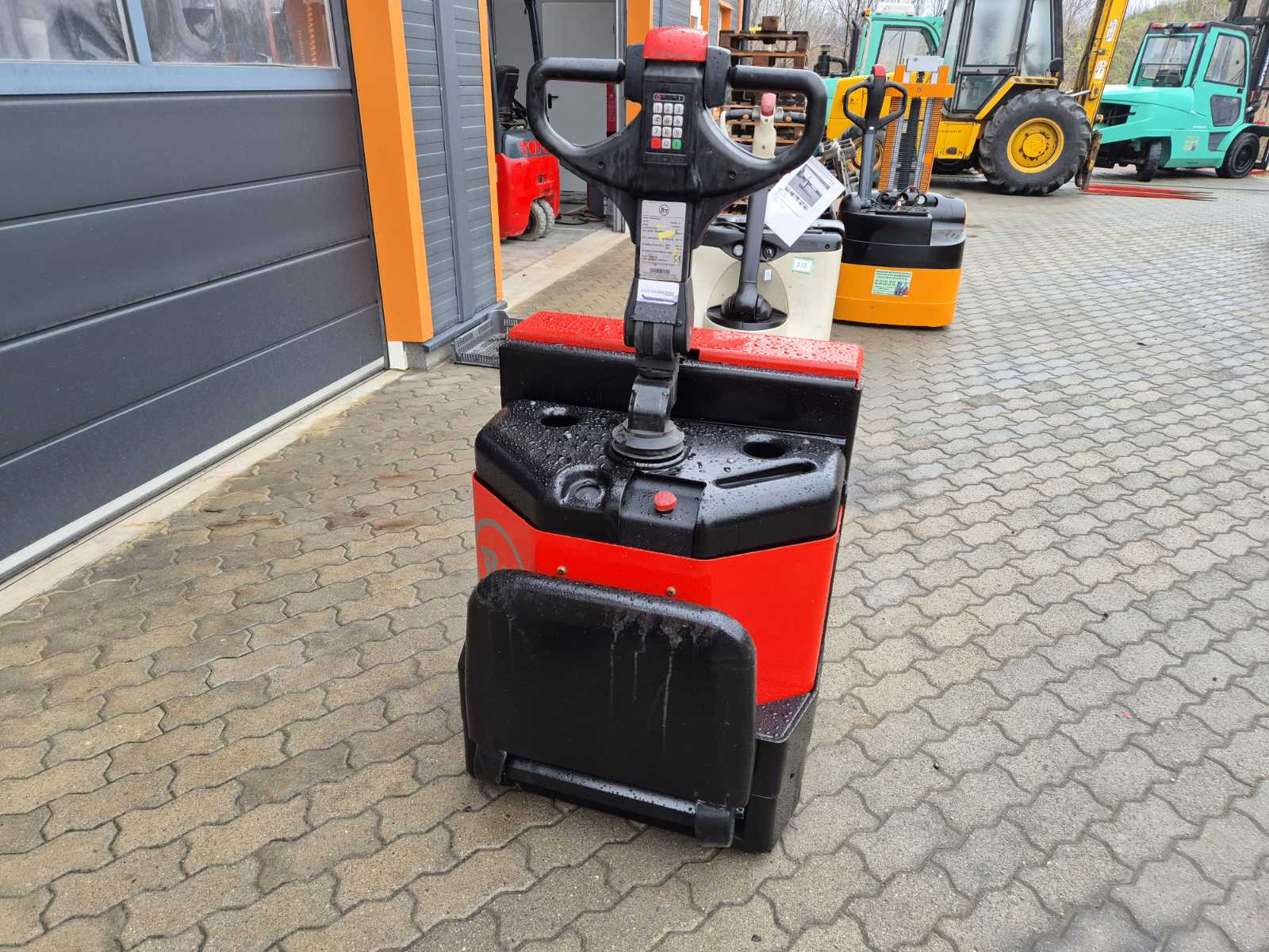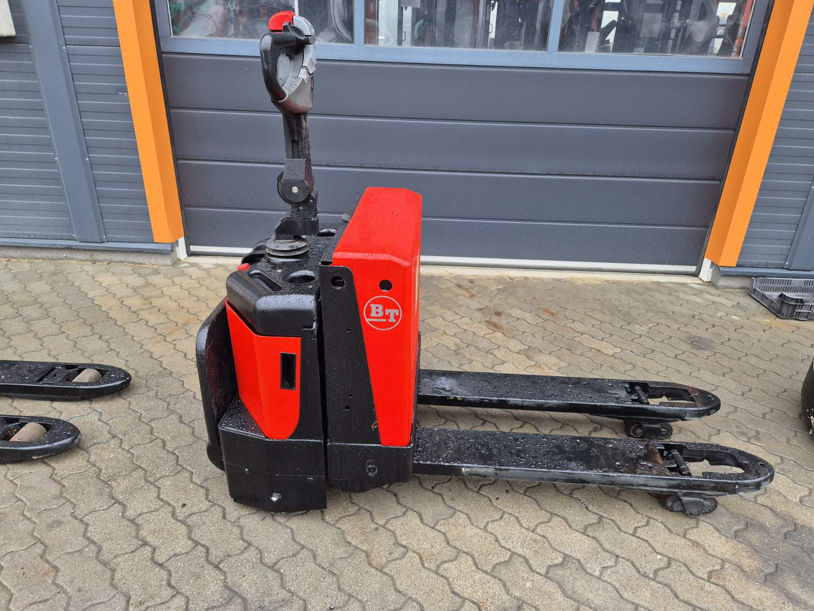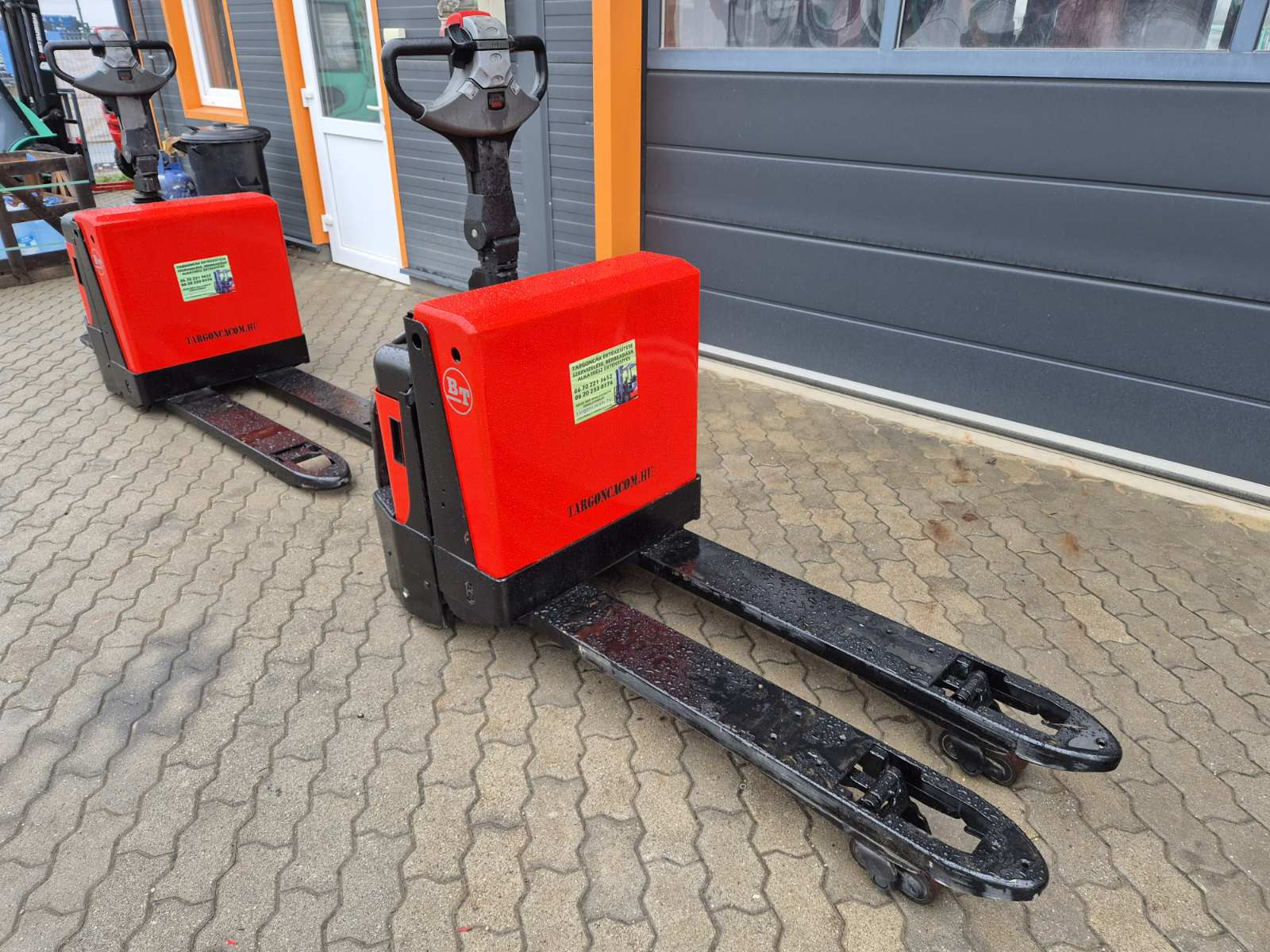 Eladó BT LPE 200 típusú elektromos gyalogkíséretű raklapemelő, 2 t teherbírás, 24V/275Ah Hawker akkumulátorral, töltővel, 6514 üzemórával, felálló platformmal, kitűnő állapotban. (T96)