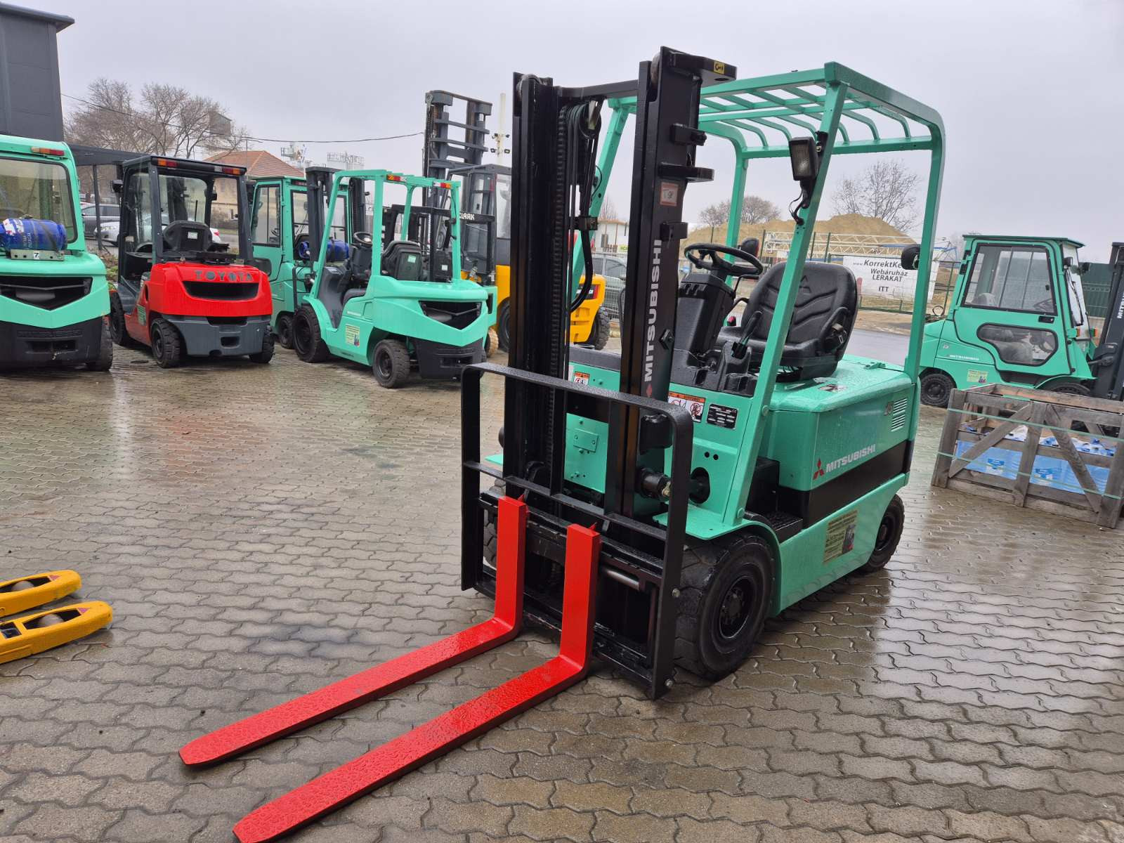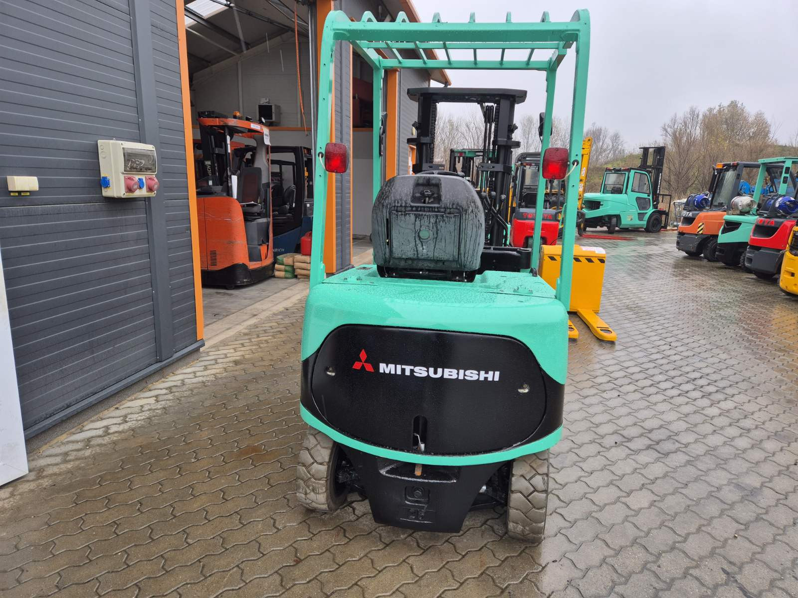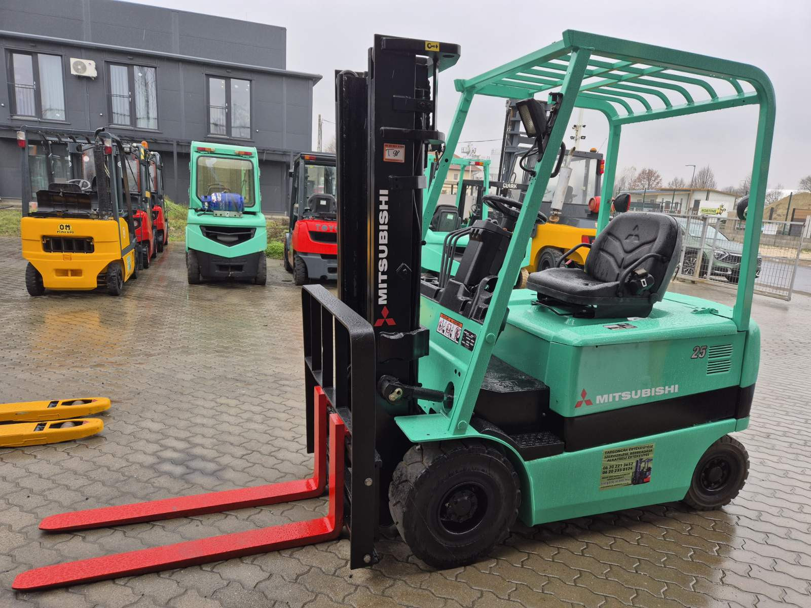 Eladó Mitsubishi FB 25K-PAC típusú elektromos homlokvillás targonca, 2,5 t teherbírás, 3,3 m emelési magasság, 80V/600Ah Hawker akkumulátorral, töltővel, 3346 üzemórával, oldalmozgatóval, munkalámpával, kitűnő állapotban. (T98)