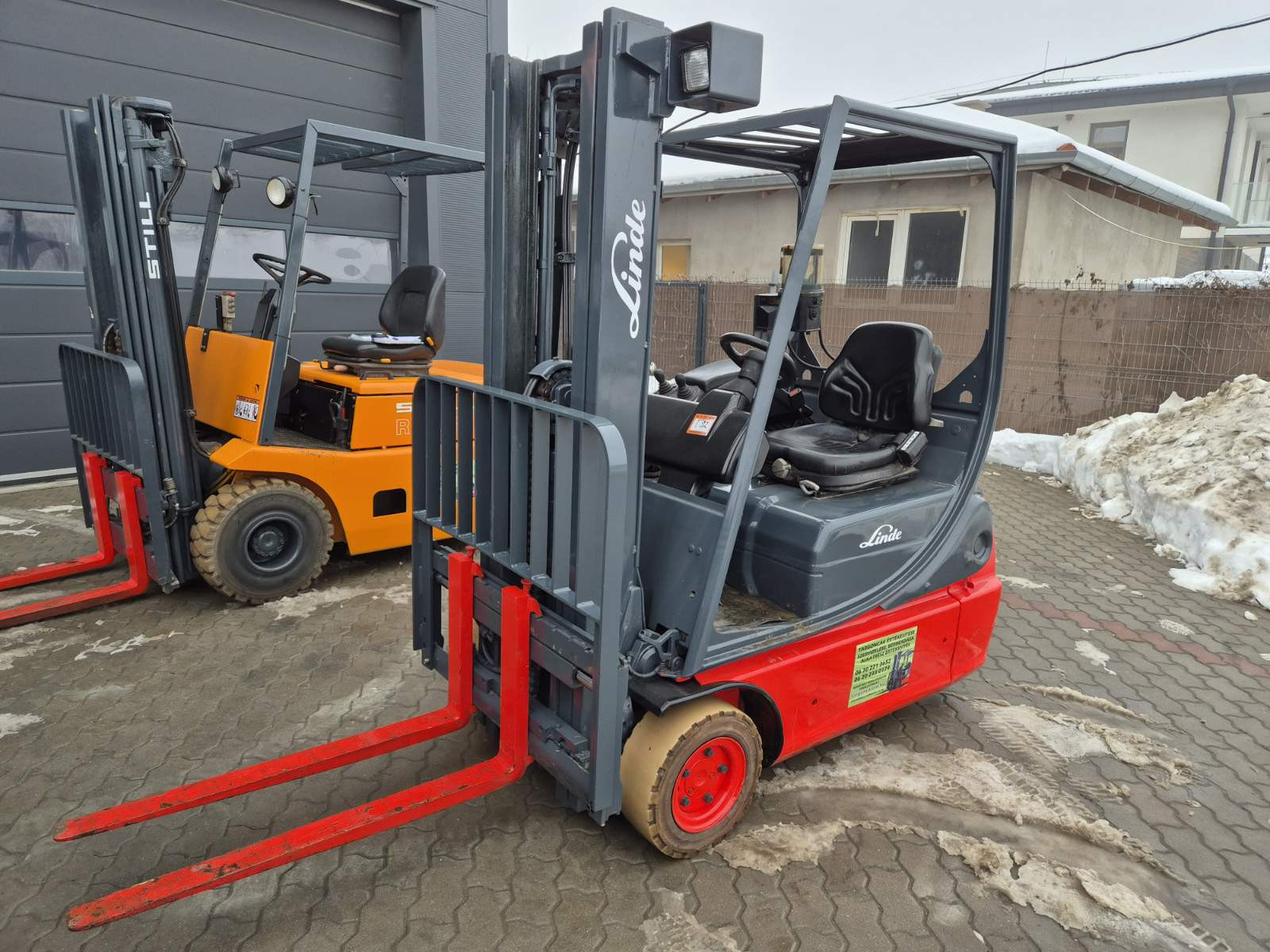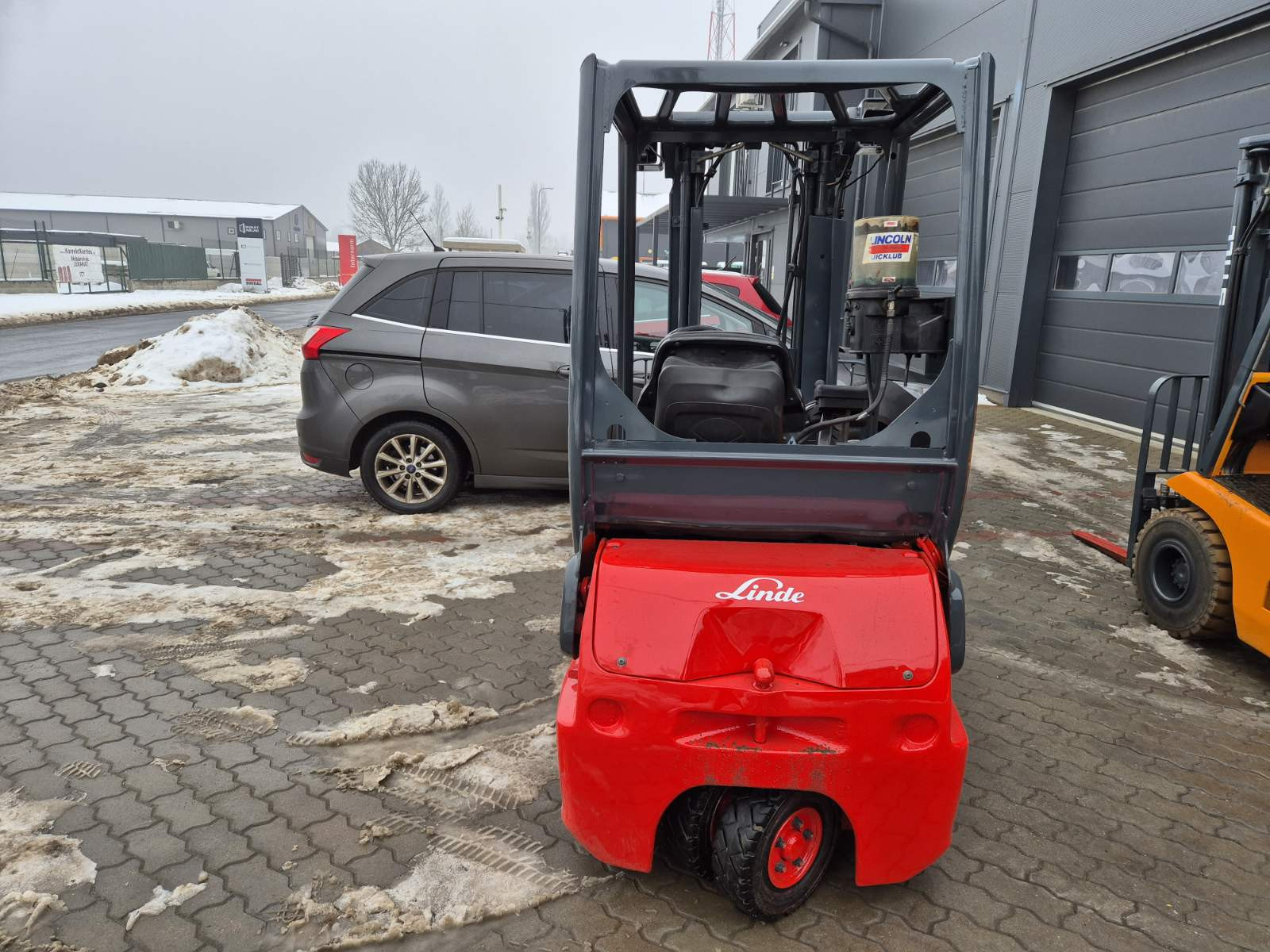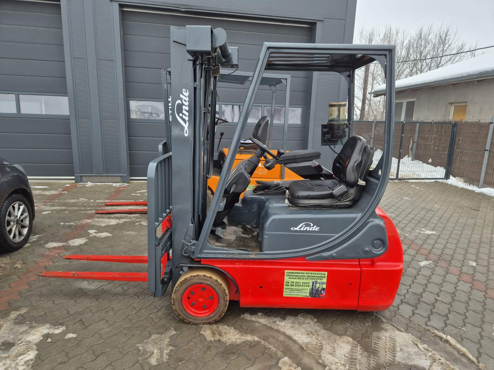 Eladó Linde E 16C típusú homlokvillás targonca, 1,6 t teherbírás, 4,45 m emelési magasság, 1,6 m szabademeléssel, 48V/600Ah Hawker akkumulátorral, töltővel, oldalmozgatóval, munkalámpával, kitűnő állapotban. (T92)